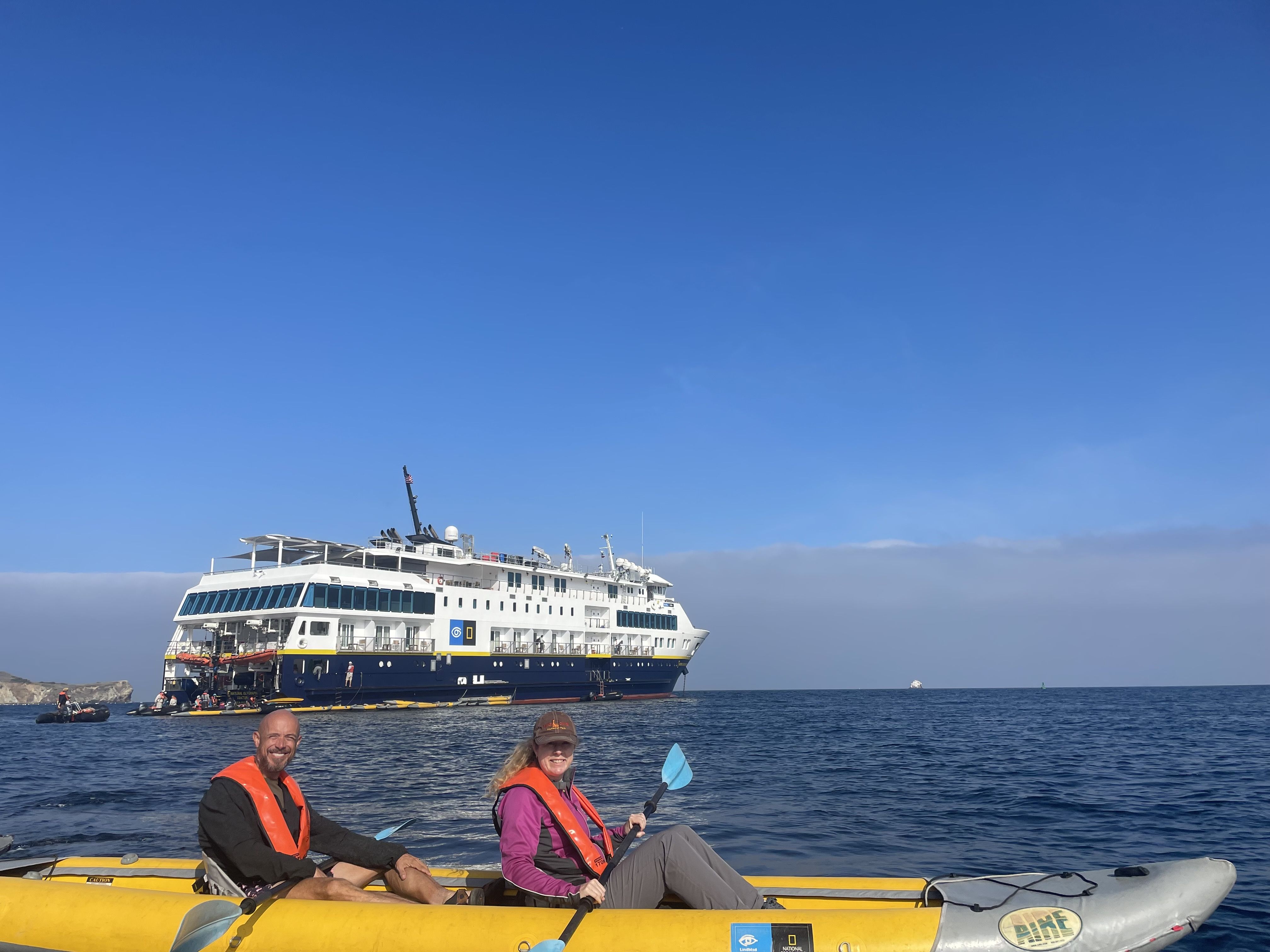 Twenty-six miles across the sea, Santa Catalina is a-waiting for me! With strong swell this morning, we decided to anchor in the isthmus cove of Two Harbors. Protected from the wind and waves we set out early to kayak and hike our way around the island. Those who took to land explored not only Two Harbors but also Cat Harbor, a quick half-mile walk away from our landing. The dirt path was covered in tracks from the endemic native fox as well as the non-native bison of the island. It was amazing to watch the once endangered brown pelican fishing in the deep waters and see the vibrant garibaldi bopping around the nearshore kelp forests!