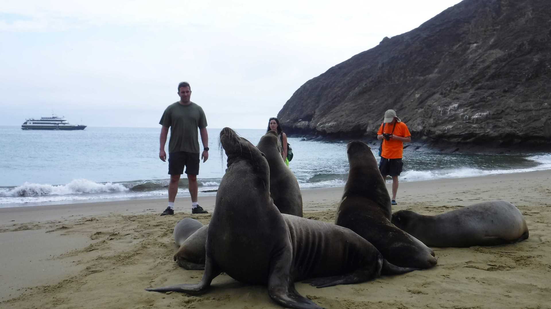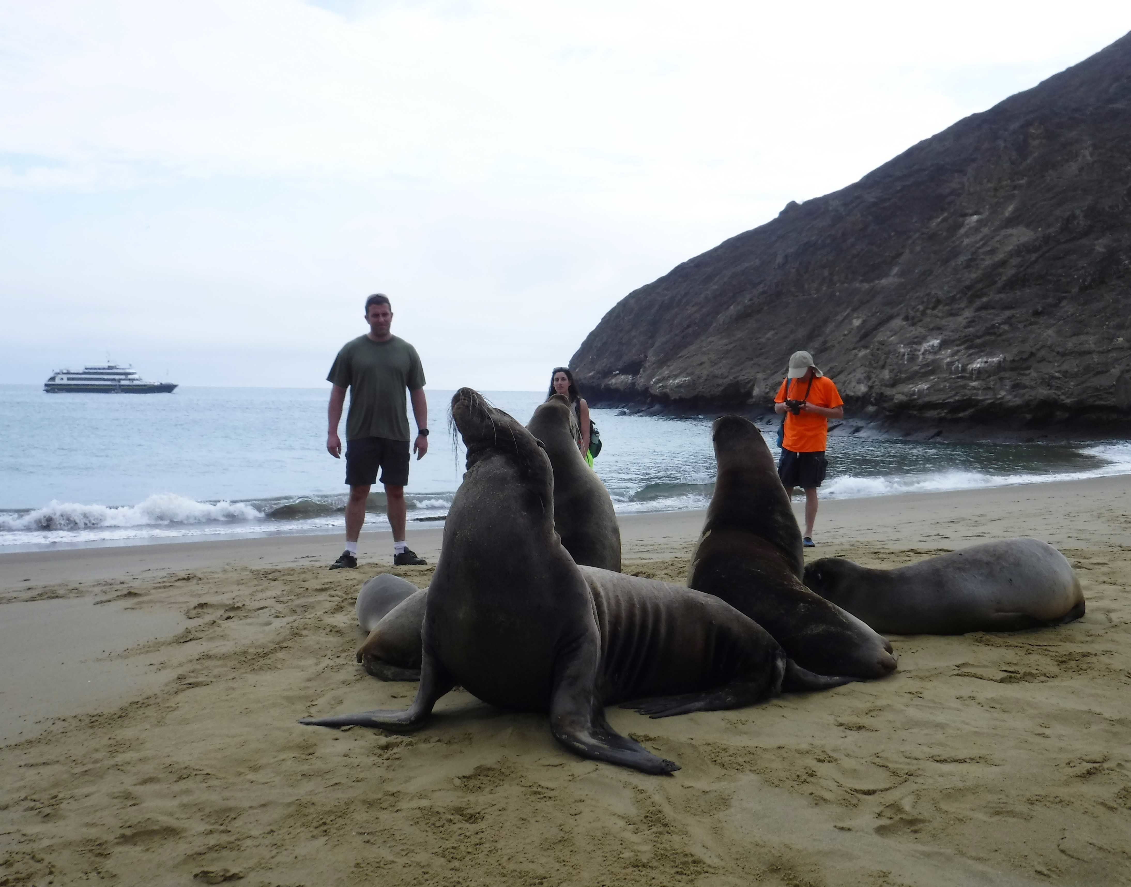 Today we visited the island of San Cristobal. First, we visited the most eastern point of the Galapagos Archipelago: Punta Pitt. Here our guests enjoyed a nice Zodiac ride along the coast in order to observe sea birds like great frigatebirds and red-footed boobies among Galapagos sea lions, Nazca boobies, and Galapagos shearwaters. The second option was a hike. Here our guests were amazed by finding blue-footed boobies all along the trail. There was time for swimming and snorkeling off a green sandy beach covered by olivine crystals. The afternoon was spent at Cerro Brujo, considered to be one of the most beautiful beaches in the Galapagos Archipelago. The end for a perfect vacation at one of the most pristine places on Earth!