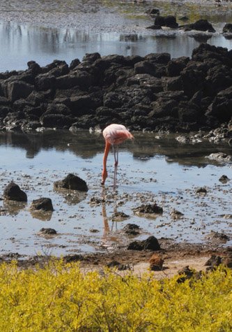 After a wet landing on rocky terrain we come across a white sandy beach surrounded by black basaltic rock, and this combined with the greens and reds of the plants gives the place an outstanding mosaic of color. Of course this is also inhabited by animals like sea birds, marine iguanas, lava lizards, and shore birds, among others including the white tip reef sharks navigating in the shallow water.