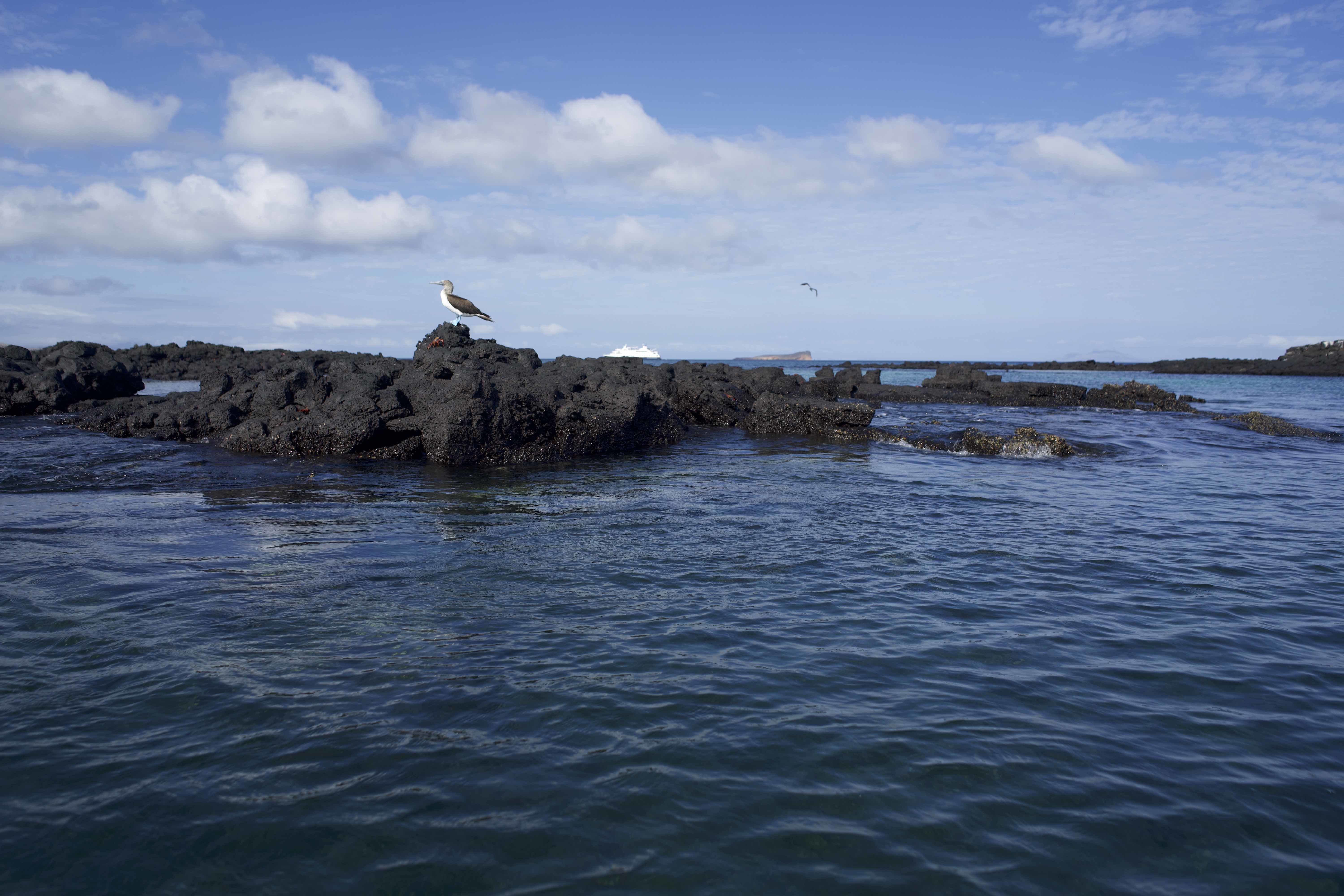 Our day started with a very relaxing hike in the morning at Dragon Hill on Santa Cruz Island. We had the chance to spot a few land iguanas on the path and close to their burrows. We also had the opportunity to take a Zodiac ride around the shore of that area and got to see a few blue-footed boobies looking for fish in the ocean. Later, we snorkeled off Guy Fawkes Islet and saw loads of reef fish.