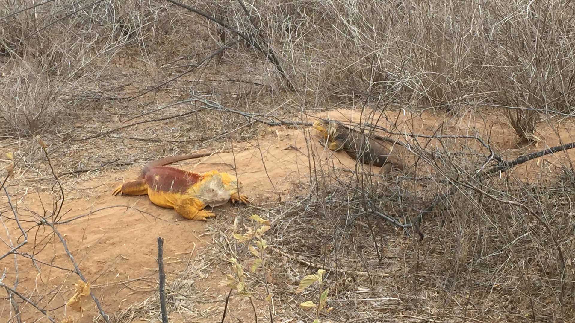 Our first sighting of the land iguana was quite far away from the trail, but as we progressed, the land iguanas sat closer and closer to the trail. We got up close to a mating pair, the male exhibiting beautiful bright yellow coloration. Guests learned about the evolutionary history of the land and marine iguanas and the ways in which they have evolved to coexist with one another. Habitat partitioning is an important behavior that allows these species to avoid direct competition, which could lead to displacement of one of the two species.