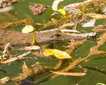 We are able to watch as four greater flamingoes slowly feed in the shallows, as black-necked stilts follow behind. Red volcanic soil mixed with green carpetweed lines our path as we head inland. Galapagos cotton with bright yellow flowers give some color to the scenery, as we search the inlands for the land iguanas. Various iguanas pass as we come to a ridge, revealing an incredible view of the surrounding islands. Santiago, Isabela, Pinzon, Bartolome, and Beagle rocks standout under a blue sky full of puffy clouds.
