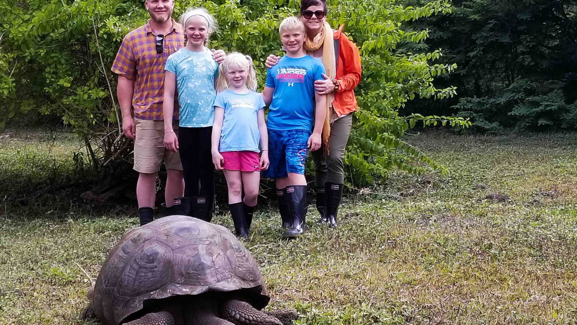 Santa Cruz is the second largest island in the Galapagos Archipelago. Considered a geologically middle-aged island, its coastline has given way to wide harbors and long sandy beaches. Its southern shore is home to Puerto Ayora, the largest human settlement on the islands and where Galapagos National Park and Charles Darwin Station Headquarters are located. We visited the town and the Giant Tortoise Rearing Center during the morning, and a small family run farm on our way to lunch in the highlands. During the afternoon we visited a giant tortoise reserve before heading back to shore.