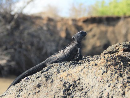 As we explored a bit more we also found some Galapagos land iguanas that are kept here and reproduced in semi-captivity. Along the trail we heard and observed Galapagos mockingbirds, yellow warblers, Darwin finches, and Galapagos fly catchers. In addition to all this we also marveled by the size and abundance of the giant prickly pear cactus which can grow more than twenty feet in height.