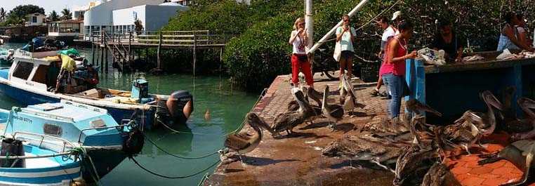 After visiting the Darwin Center we had the pleasure to stroll along the vibrant streets of Puerto Ayora. We enjoyed taking part in some of the activities of the community. The fishermen’s dock is one of the most interesting and amusing places to visit. Today dozens of Brown pelicans and some Galapagos sea lions were surrounding the fishermen, who were cutting fish, with the hope of obtaining a morsel.