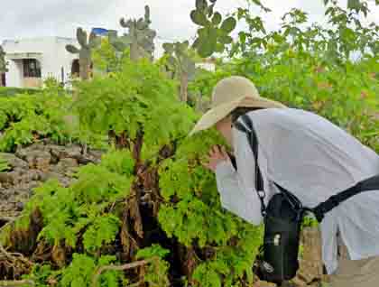 Today we had another magical exploration of the spectacular landscapes of the Galapagos. From a tiny zig-zag endemic spider to abundant giant Galapagos tortoises, we had a full day of inspiring encounters. We began with a visit to the Charles Darwin Research Station, a meaningful place for me as I worked here for four years. Here, we learned about endemic plants and insects, which illustrated the uniqueness of the ecological communities existing in the Galapagos. To see the different shapes of Galapagos tortoises’ shells, and the fascinating behavior of the zig-zag spider to avoid predators, some of the many living examples of evolution in action. Then, we learned from the efforts of the Galapagos National Park and the Charles Darwin Foundation to overcome the negative impacts that invasive species bring to the native flora and fauna. This place also allowed us to observe the different shapes of Galapagos tortoises’ shells.