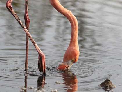Our hike continued to a brackish water lagoon, where we saw four greater flamingos, a subspecies endemic to the Galapagos Islands. It was a nice surprise, as we never know if the flamingos are going to be present in this area. One flamingo came very close to our group, posing for great photos. Two lava gulls were observed, as wells as a pair of common stilts.