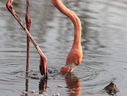 We had a hearty breakfast and then boarded the Zodiacs for a short ride into shore where we landed at the main town dock. Three buses took us to the far side of town and into the headquarters of both the Charles Darwin Station and the Galapagos National Park. Naturalists Gilda, Celso and Paul led us a half mile along a cobble paved road to the captive breeding enclosures for giant tortoises. As I had explained in our evening briefing, a recent exciting discovery of tortoises with genetic material from the extinct (we thought) populations from the islands of Pinta and Floreana has given us new hope for saving these two races of tortoises. The large dome tortoises that we saw this morning are new additions to the captive breeding program and are some of the ones recently brought from the slopes of Wolf volcano. We saw “Super Diego,” too, an old saddle-backed male. He is the excellent breeder from the island of Española and was returned to Galapagos in the 70’s from the San Diego Zoo!