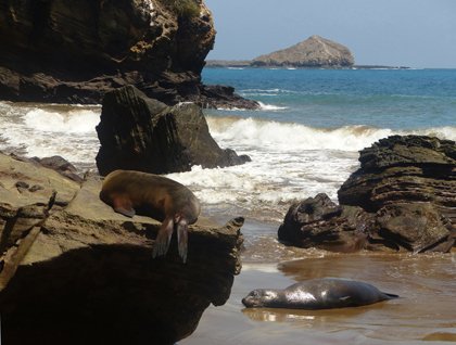 Giant tortoises are also an integral part of the work that is being done here, with programs in rearing and breading in captivity being presented to us as we observed giant tortoises and learned about their history. After an interesting visit focusing on the scientific aspect of Galapagos’ protection, we are let free to wander among the “locals”. Charles Darwin Avenue has a great deal to offer to visitors, however the local fisherman’s dock is the main highlight with the catch of the day being cut into filets. Brown pelicans are synchronized in their movements as the fisherman move back and forth and a potbellied Galapagos sea lion waits patiently for the fisherman to turn his back so he may run away with a bit of the catch.