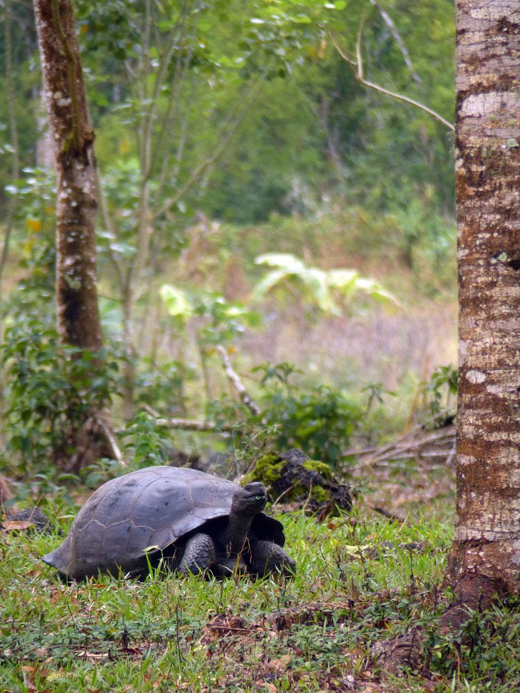 The afternoon however, was the highlight of the day. So after lunch we travelled further into the highlands following the access road of another local farmer into an area where the Galapagos giant tortoises roam. Most (but not all) of the islands in Galapagos have their own population of giant tortoise. Tortoises do not voluntarily enter the ocean to swim, and so these populations have remained separated. Over the millennia, this has resulted in distinct species evolving on each of these islands. Santa Cruz Island is rather unusual on top of all that, in that is has been recently proven by genetic studies to have had two separate introductions of giant tortoises, both of which have remained separate and distinct, despite living on the same island. We visited the southwestern population Chelonoides nigrita.