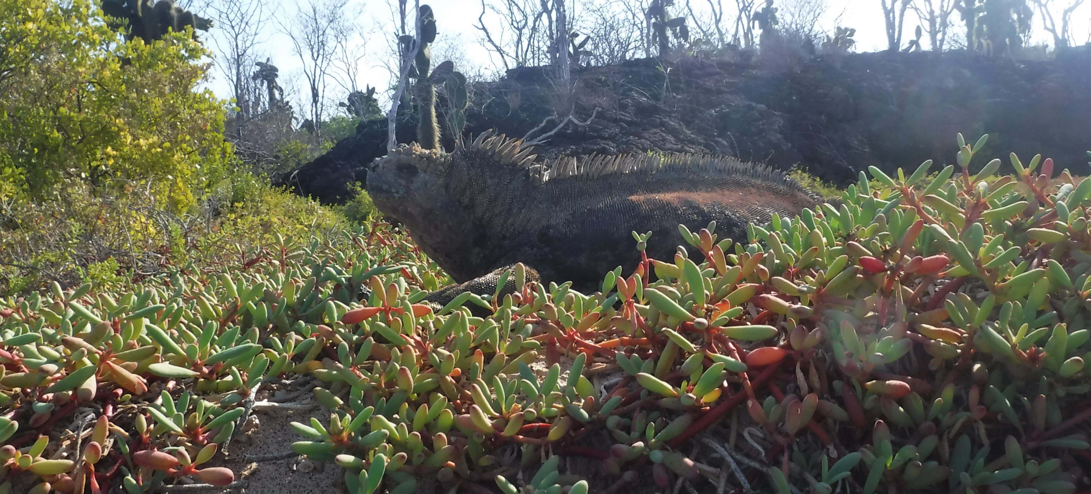 A sunny and bright day welcome us into Dragon Hill, where our target was to find the amazing land iguanas of the Galapagos. The trail was easy, beginning at an organic beach surrounded by shore vegetation where some marine iguanas were warming up.