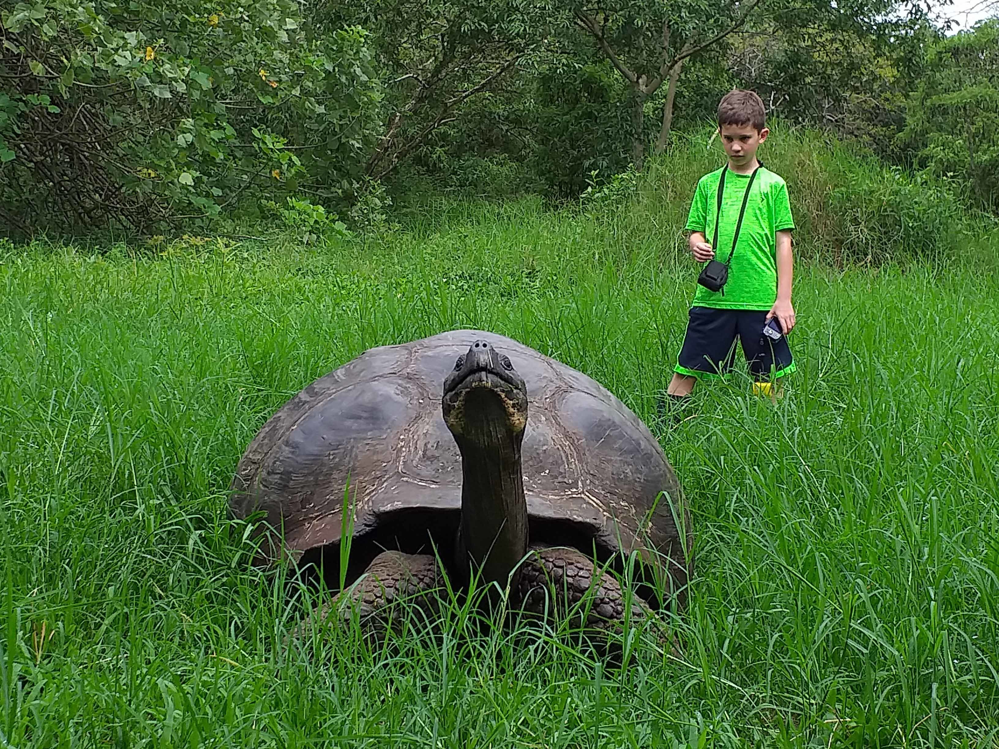 A couple of hours later, we started a hike at another nearby farm, to see giant tortoises in the wild. These beautiful animals were wandering around the forest of this place, and we ended up seeing about twenty or more of them. It was amazing to see them thriving in their natural environment, where they have been living for many thousands of years. At the very end of the outing, we paid a visit to a lava tube, another amazing volcanic feature of Santa Cruz Island.