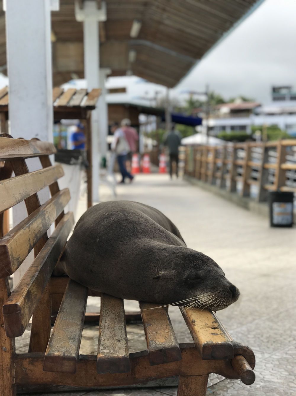 So, the morning was spent learning all about the captive rearing program for giant tortoises, run by the Galapagos National Park with assistance from scientists from diverse organizations including the Charles Darwin Research Station. Free time in town for shopping? Done. People watching while walking the main road? Done. Open-mouthed gaping at the fish market while sea lions act as clean-up units at the hips of the fishmongers? Done.