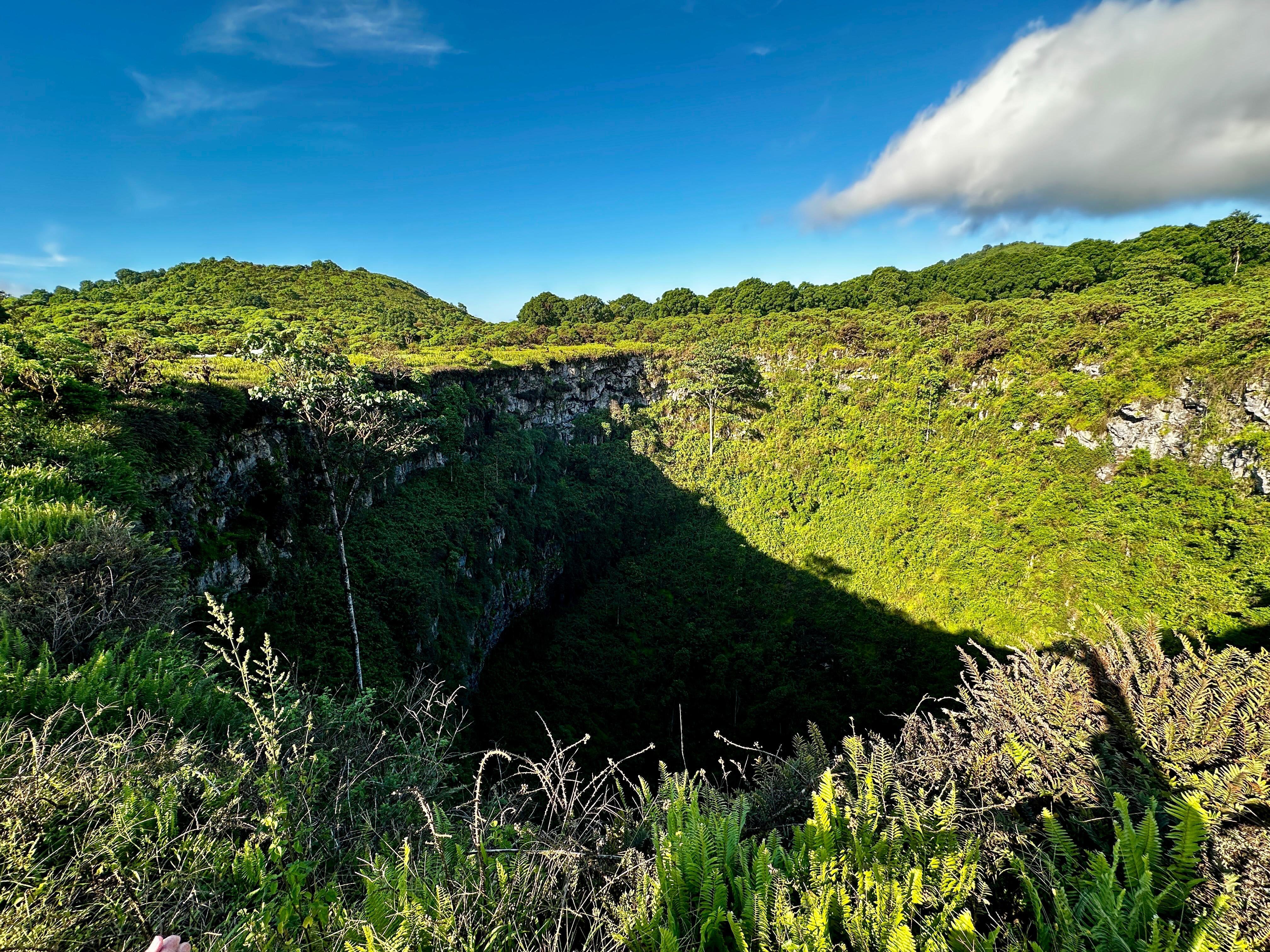 In the afternoon, we journeyed into the highlands of Santa Cruz where the landscape shifted dramatically. Moist, green, and mist-laced, the highlands offered a stark contrast to the arid lowlands. It is here, in this lush environment, that we encountered giant tortoises roaming freely in their natural habitat. The experience of seeing these prehistoric creatures ambling through the grass, grazing calmly and occasionally soaking in muddy pools, was nothing short of awe-inspiring. We had time to walk among them, observe their slow but purposeful movements, and appreciate the grandeur of these ancient animals in the wild.
