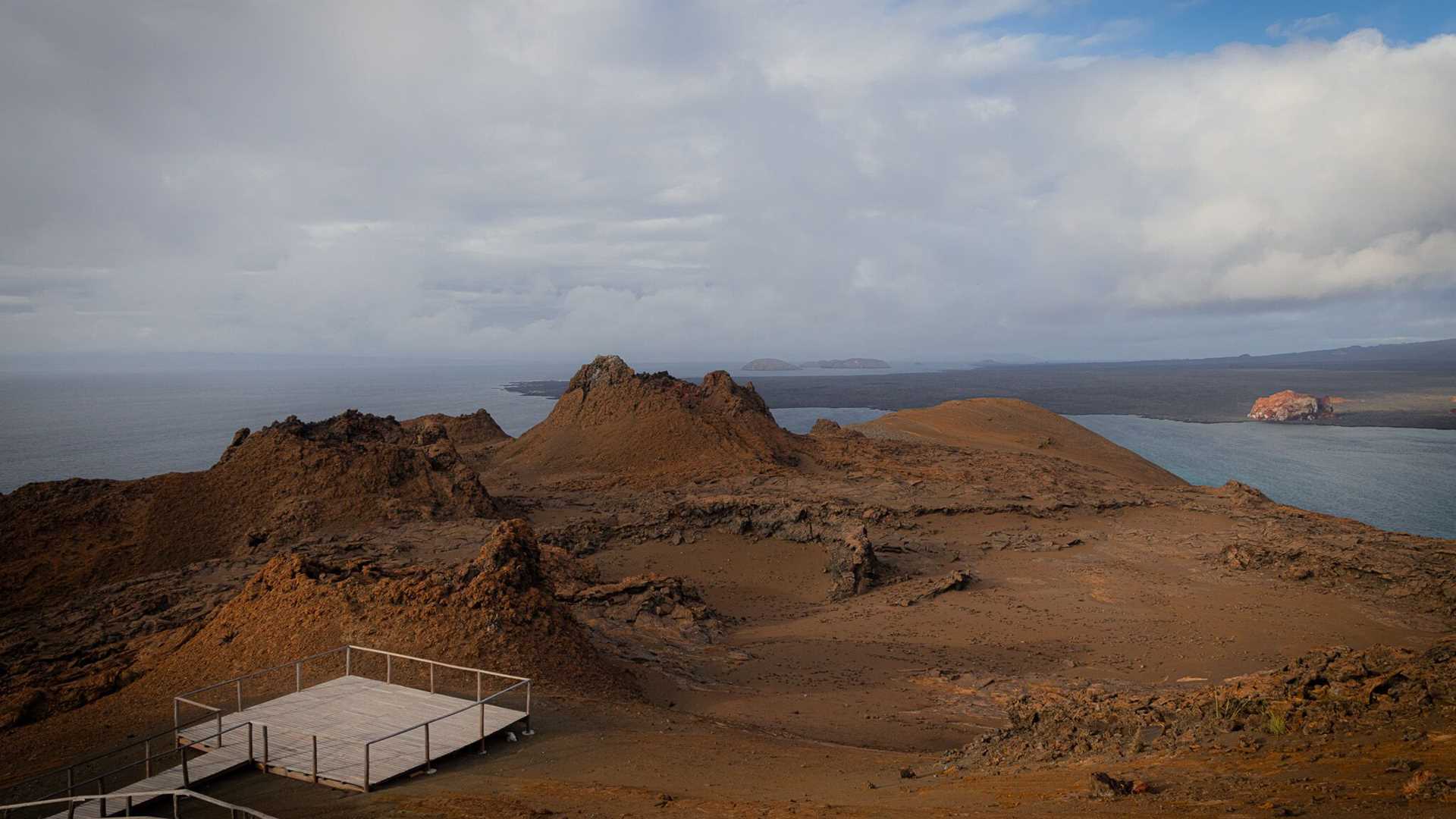 On the first full day of our expedition, we visited Bartolomé, a famous island located on the eastern side of Santiago Island. We had an early start with a morning walk and a Zodiac exploration. After a walk up 372 stairs, we were rewarded with an iconic view of the Galápagos, made famous in the movie “Master and Commander.” We finished our visit with an underwater exploration to observe Bartolomé’s marine life.