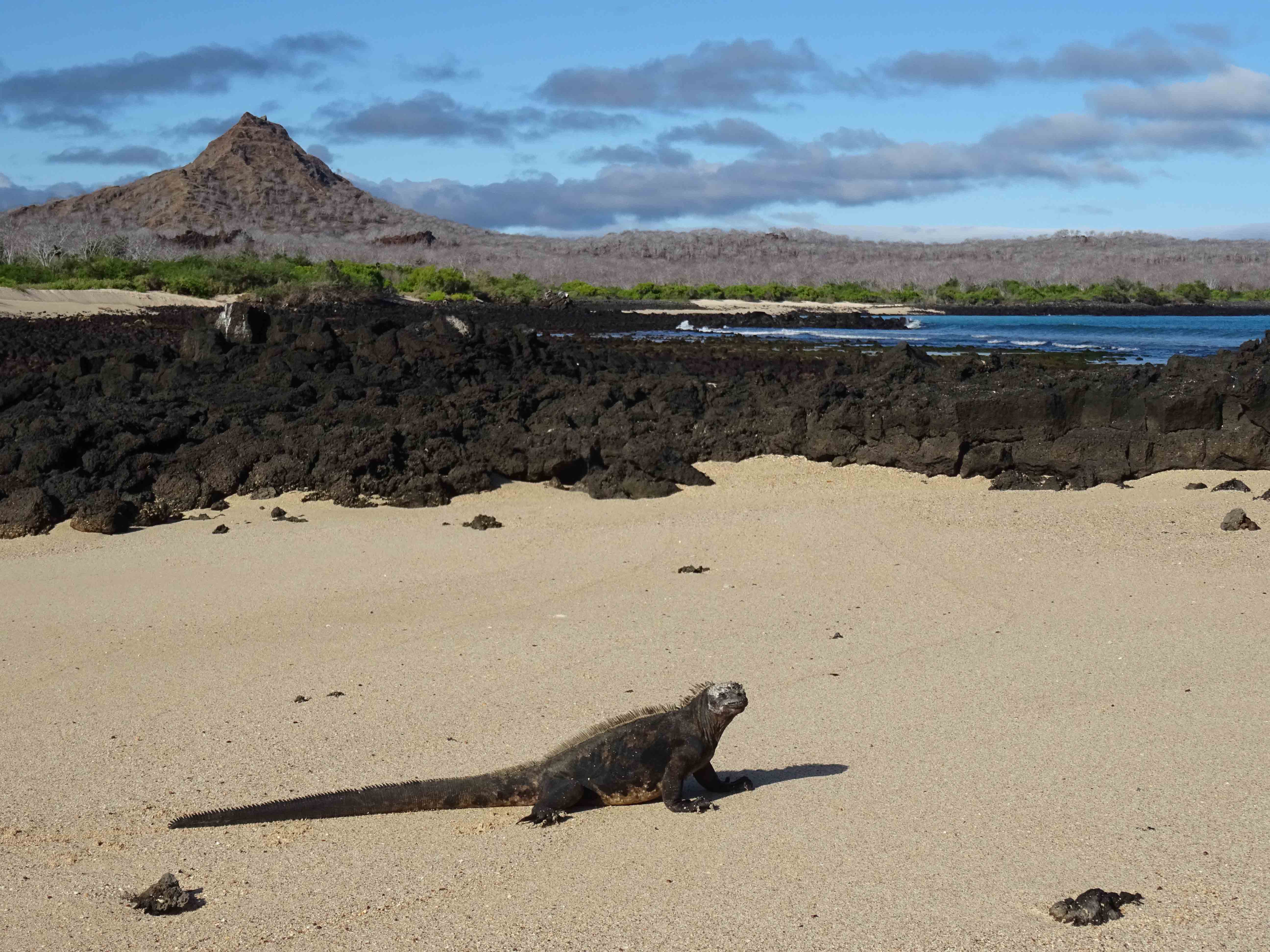 This morning we arrived to the north western part of Santa Cruz Island; after breakfast we headed ashore to Dragon Hill where we went looking for Galapagos land iguanas, we found some colorful males as well as females. The iguanas we saw today looked interested on each other and by their aggressive display these were ready to mate. Males usually bob their heads and walk slowly with trying to look bigger and showing off their bright yellow color skin. As we explored this place we found Galapagos marine iguanas along the coast sunbathing and others were heading to the water to feed.