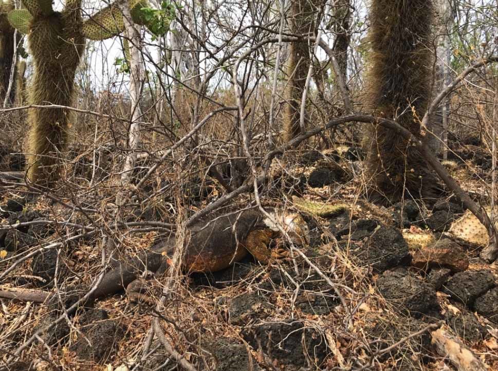 After breakfast, we started the first outing of the day for the hike of Cerro Dragon, where we encountered some lava gulls, striated heron and Galapagos land iguanas around the trail, and in the lagoon there were some black-necked stilts among other shore birds. The hike was very warm and the first rains from the wet season have brought fresh water to the region.