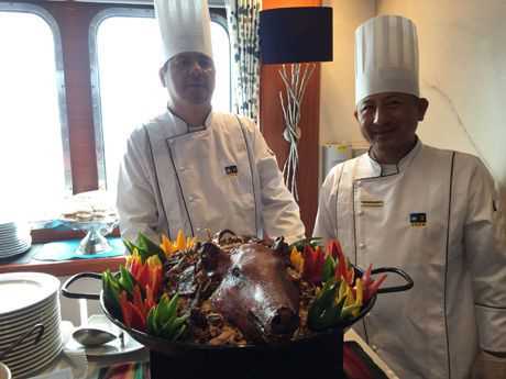 At sunset time, our hotel manager Sebastian prepared a special wine tasting for us out on deck. It was a lovely way to spend the evening, sipping wine while admiring Daphne Island with a beautiful sunset in the background.