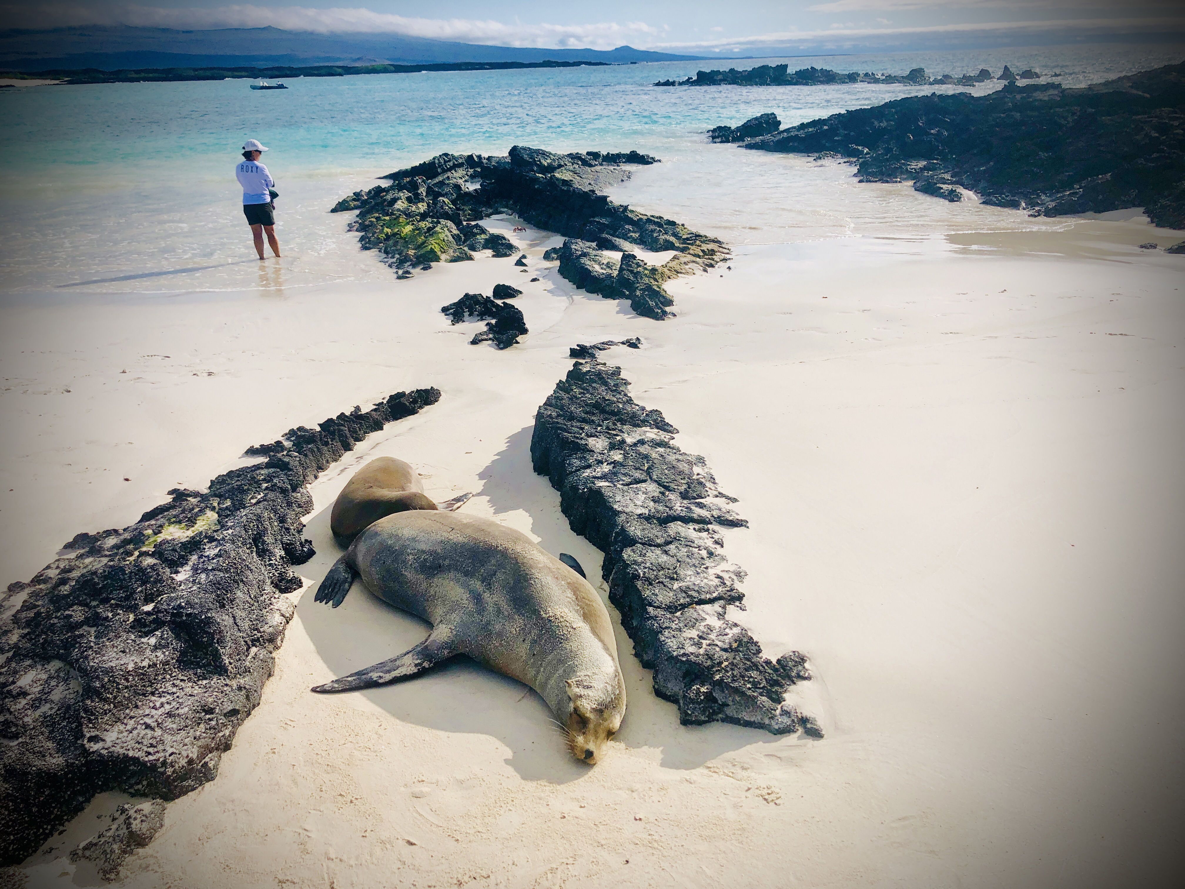 After lunch, we started our journey back to the ship, which soon navigated to our second visitor site, Bowditch Bay on the western side of Santa Cruz. in the late afternoon we landed on a small beach great for relaxing and swimming. We stayed on this white sandy beach until sunset, enjoying the last moments of our visit to the second largest island of the Galapagos.