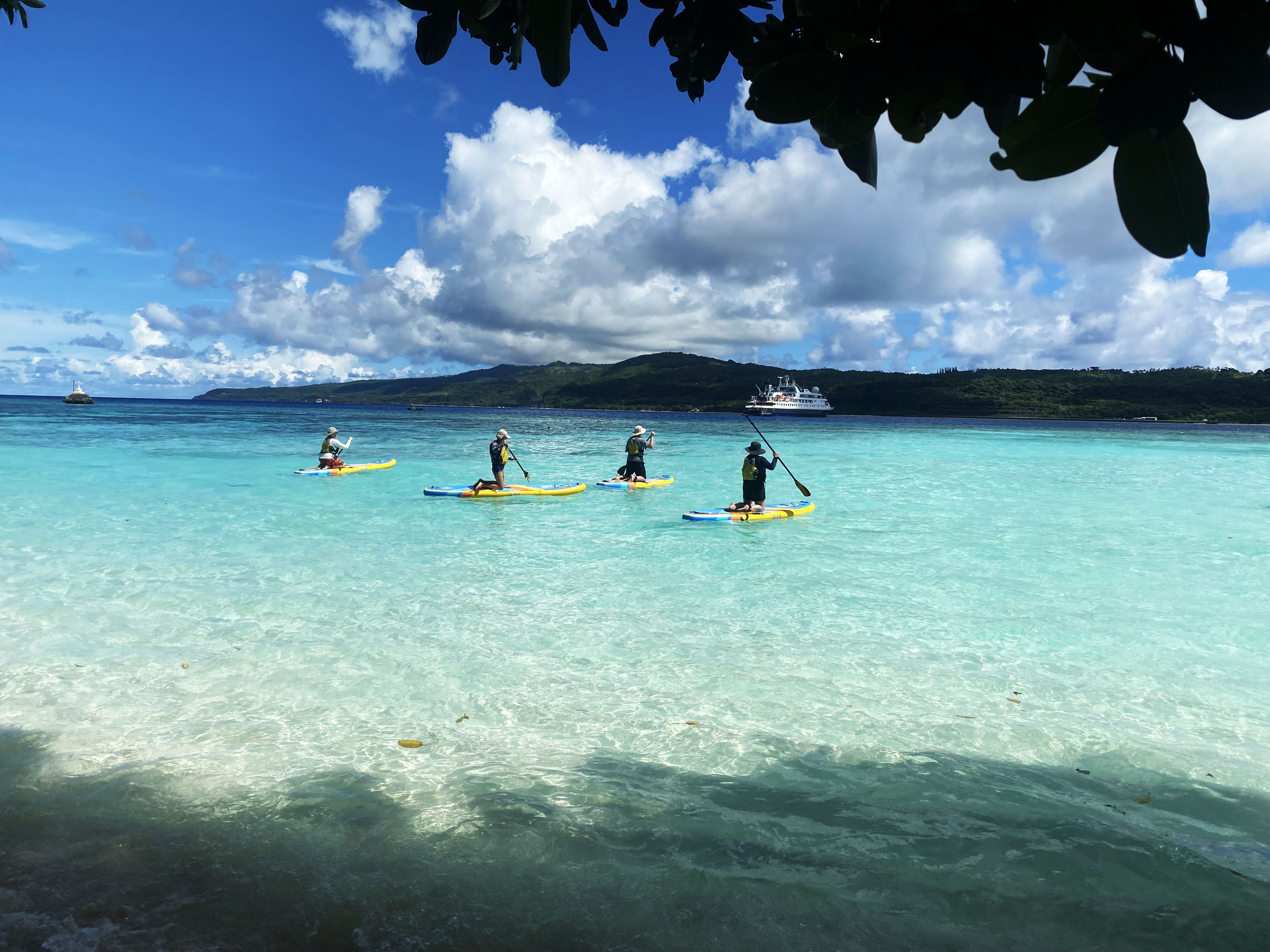 This morning, we embarked on a scenic hike at Punta Pitt, San Cristóbal Island, where we found all three booby species - red-footed, blue-footed, and Nazca. We also took a Zodiac ride along the rugged coastline for close-up views of dramatic cliffs, surrounded by seabirds and sea lions basking in the sun. In the afternoon, we kayaked around Cerro Brujo’s golden cliffs, followed by a relaxing stroll along its pristine white-sand beach. Some even enjoyed a refreshing swim in the turquoise waters. This perfect day ended with a cruise around Kicker Rock, lit in the golden light of sunset.