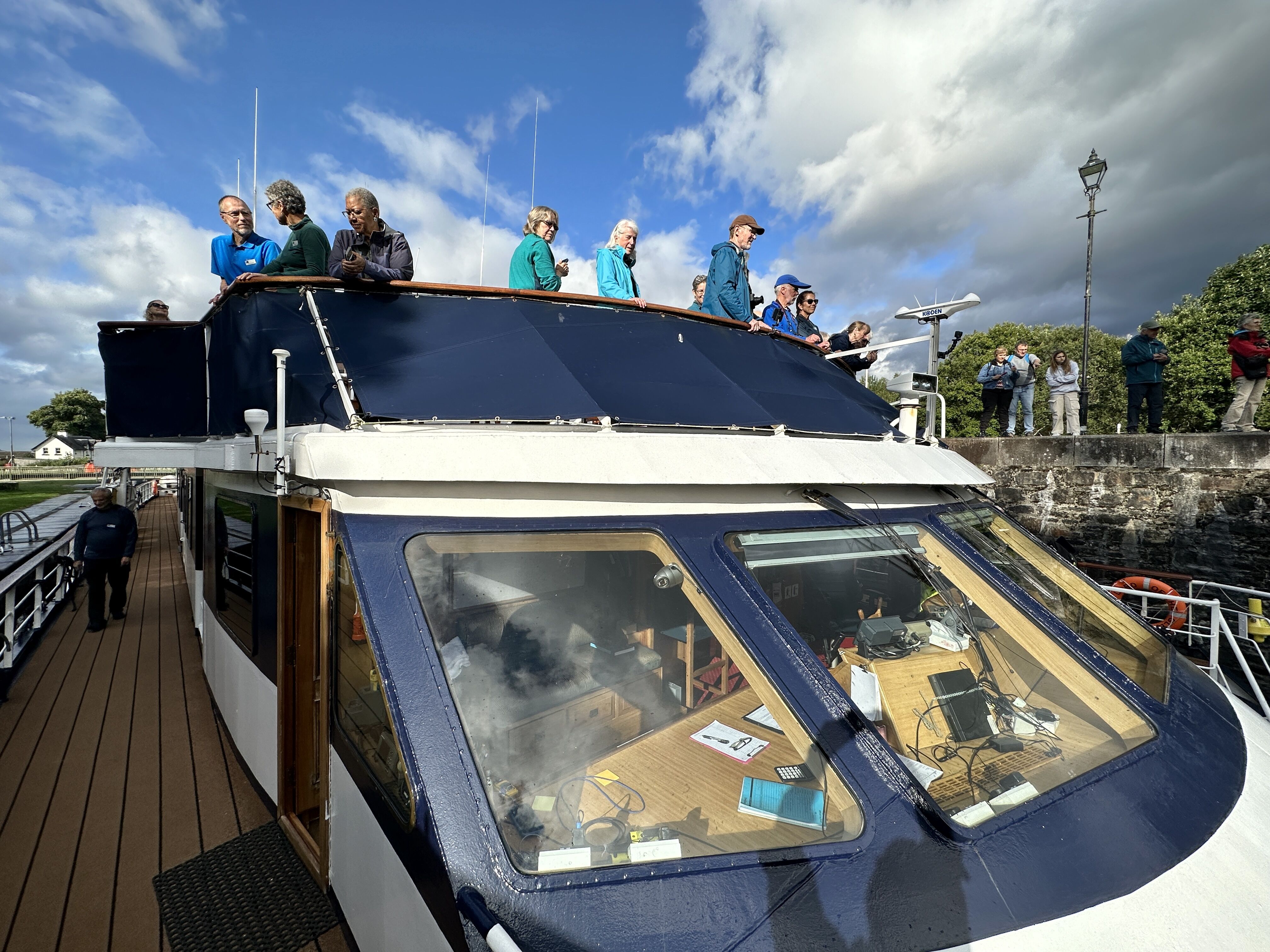 Bartolome Islet is a small volcanic island located off the east coast of Santiago Island. It is known for its distinctive Pinnacle Rock, a towering volcanic formation that rises out of the sea. The island is relatively barren, with a stark landscape of black lava rocks and sparse vegetation. Right after breakfast the guests of National Geographic Islander II landed at Bartolome and climbed to the summit to take in one of the most scenic views of the archipelago. Our guests also had the opportunity to snorkel in the waters around Pinnacle Rock, where they observed a variety of marine life including fish, sea turtles, Galapagos sea lions, and Galapagos penguins.