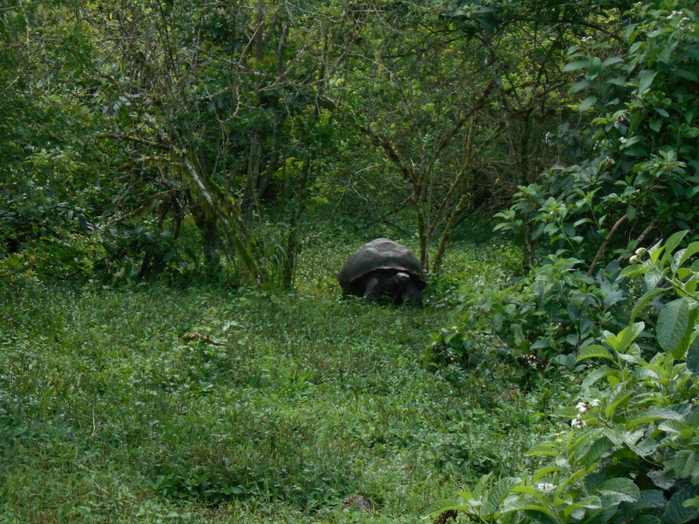 After a wonderful lunch at a local farm, we walked for about an hour and saw many tortoises of different sizes in the wild, these “giants” were wandering around a water pond and along the trails located in this forested area on the island of Santa Cruz. It was wonderful to see them in their natural environment, where some of them have lived peacefully for many, many years.