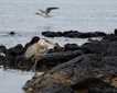 Right at the disembarkation beach, we were received by a large pod of friendly (shameless?) Galapagos sea lions. Some of the young ones were extremely curious and approached us closely. At least one guest was touched by their whiskers! We started to walk inland in search of the elusive Santa Fe land iguana, a nice-looking lizard that is endemic to this island only. It took some exploring to finally find the iguanas. Once we reached the embarkation beach at the very end of the walk, we observed evidence of the very recent delivery of a sea lion pup. Some mockingbirds vigorously pecked at the afterbirth. Just a few feet away, the mother and the newborn pup were talking to one another to imprint their voices. This will allow them to recognize each other even amongst large groups of sea lions.