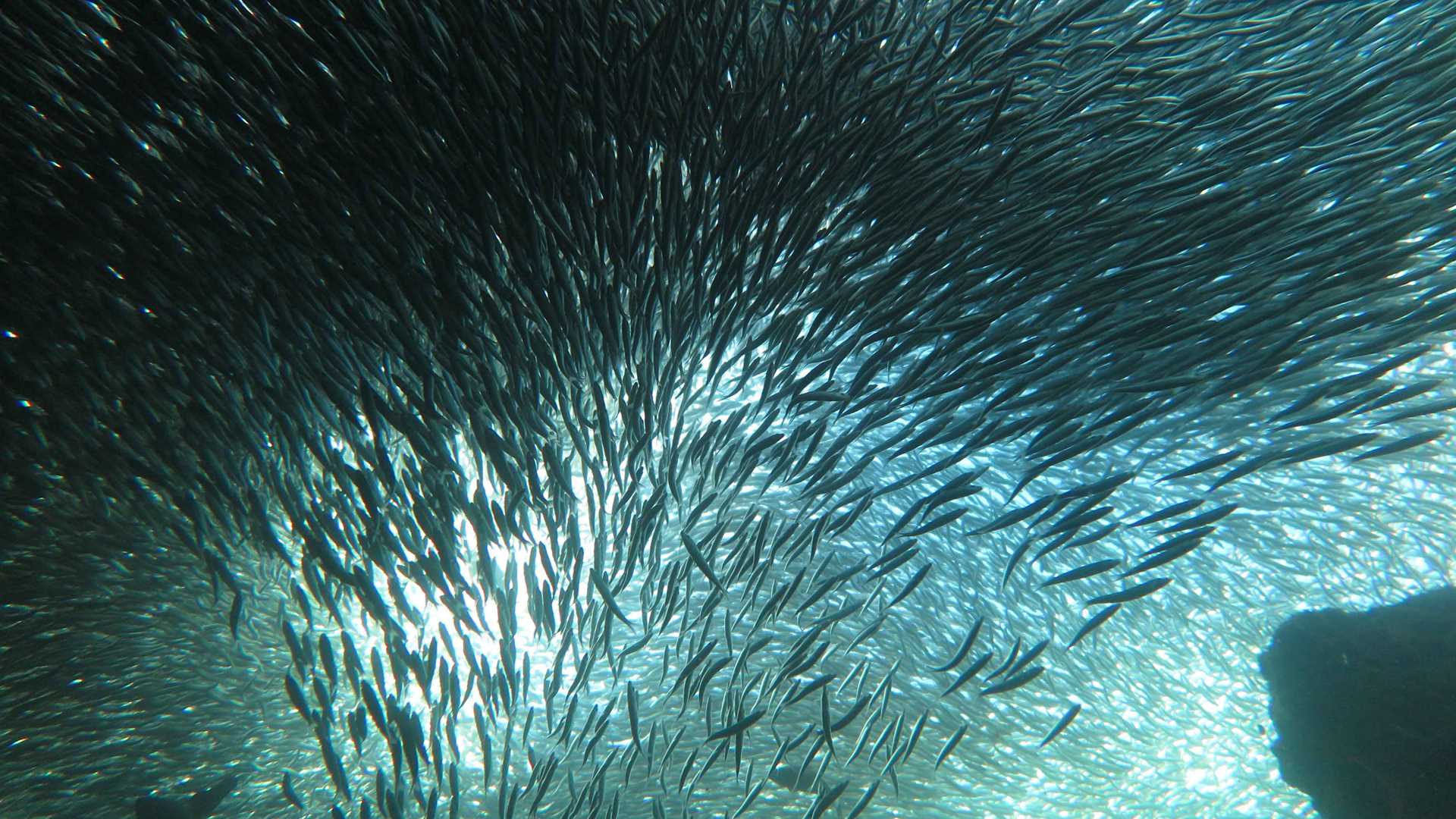 Some of us spent the afternoon looking for more action along the shore, and we found something exceptional here—hundreds of thousand anchovies, perhaps the largest school that I’ve seen over years of free diving! The feeding frenzy was attended by blue-footed boobies, pelican barracudas, albacore, pacific sierra and even yellowfin tuna! It was the most amazing moment, with the low afternoon sunlight, perfect for photography underwater. Some areas were dark enough to be disorientating—the sun could not be seen from down there, and we relied on bubbling in the water to help us find our way back to the surface. It was an exciting experience.