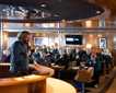 After breakfast, the first activity was a Zodiac ride that took us along the rocky coast of this middle aged island, where lava flows and erosion create interesting cliffs and rocky shores. Petrels, phalaropes and other marine birds were displaying in front of our cameras all morning. At the same time, our team of young global explorers went out in one of the Zodiacs to learn to ride it in the calm but windy waters of this beautiful cove.