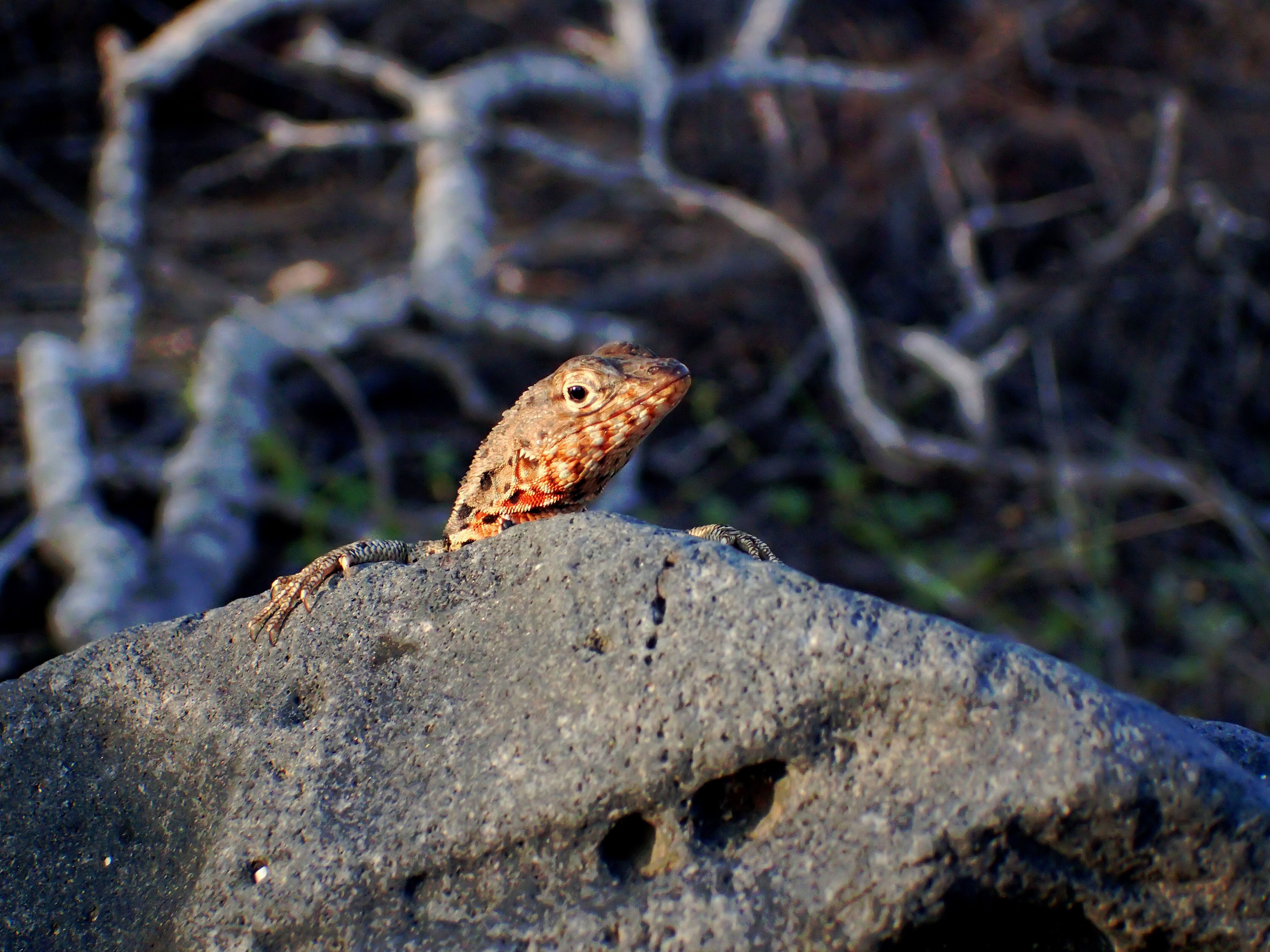 After the captain moved the ship to a different position in the afternoon, we enjoyed more activities. Some guests took a very nice walk to the grottos, beautiful rock formations on the coast. This place is home to Galapagos fur seals, one of the species of sea lions in the Galapagos. With big, puppy-like eyes and very furry bodies, these animals are half the size of Galapagos sea lions. According to the guests, they are the cutest species of sea lion. To finish the day, we walked along the beach during sunset and took in the amazing colors as we made our way back to our home, National Geographic Endeavour II.