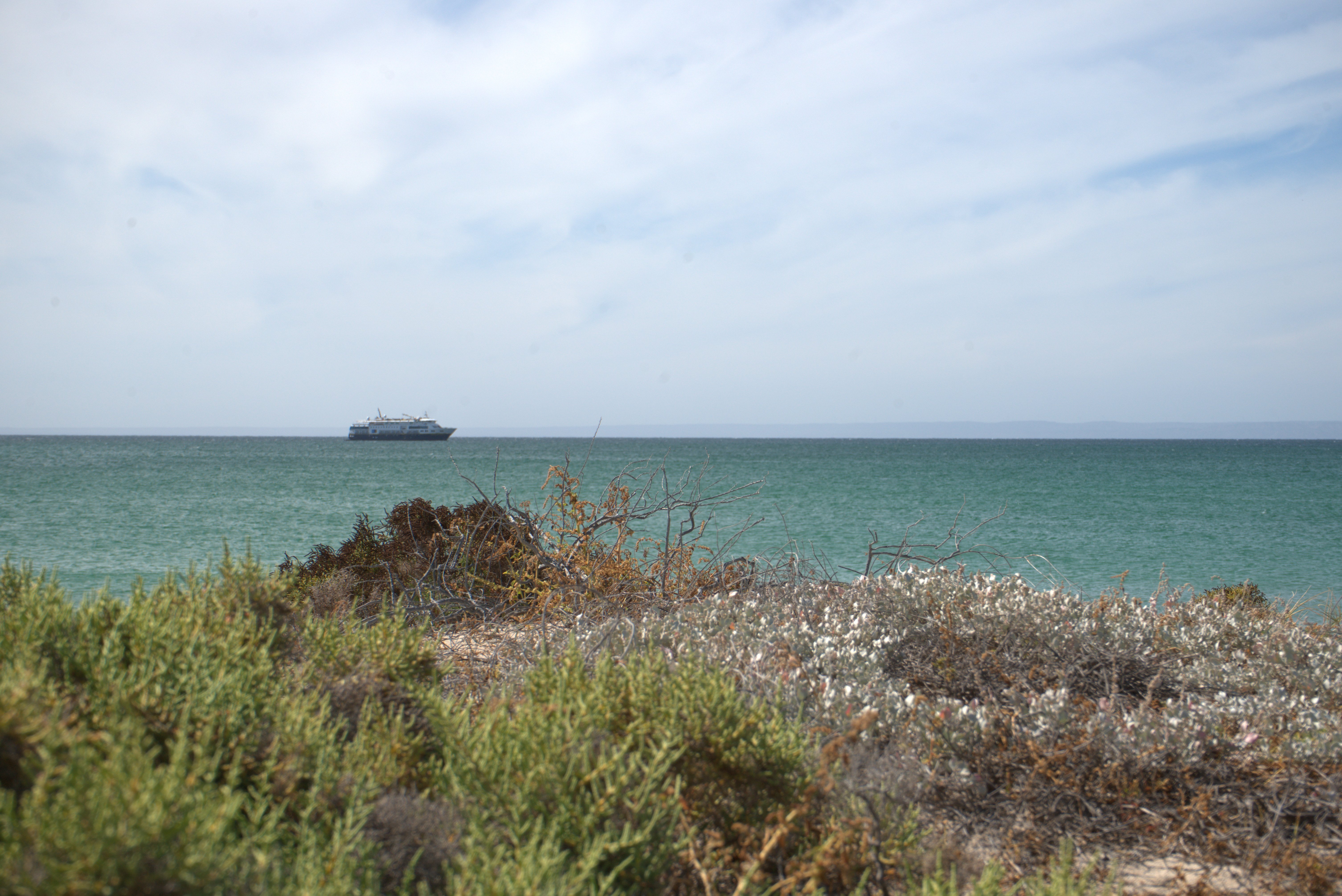 In the afternoon, we visited Puerto Egas, where we made a wet landing on a beautiful black sand beach. We walked along a loop trail that took us around the shoreline to the inside of the island. On the coast, we observed sea lions, various shorebirds, and marine iguanas. The beautiful landscape featured many volcanic shapes. One of the most famous is a basaltic rocky bridge.