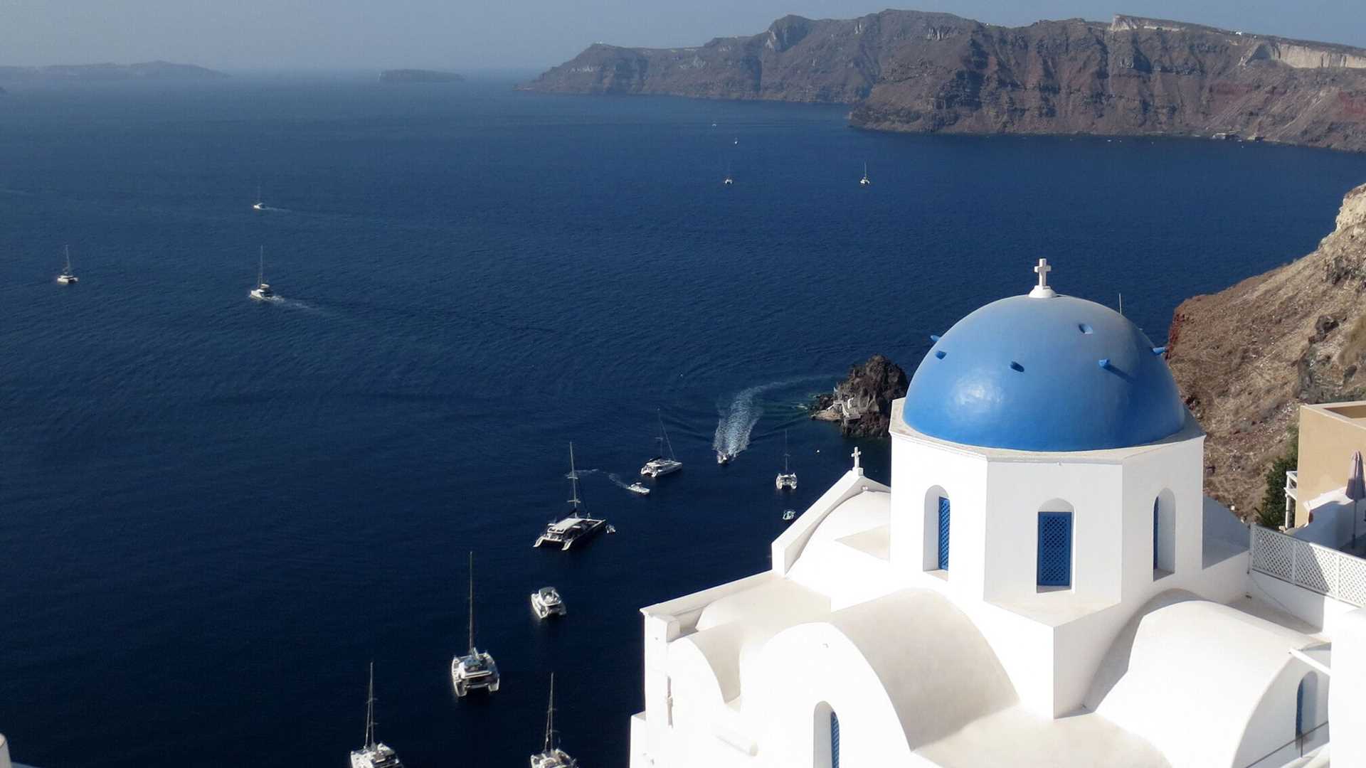 Our full day on the fascinating island of Santorini (Thera) started with a stroll through the beautiful town of Oia, once a quiet village of blue domes and whitewashed houses, but now growing in size and popularity. After our visit, we headed for the archaeological museum in Fira, where numerous well-preserved frescoes from the Middle Bronze Age are on display. These spectacular paintings give us a tantalizing glimpse at life in the Aegean around 1630 BC, including one of our best depictions of ships and seafaring in this era.