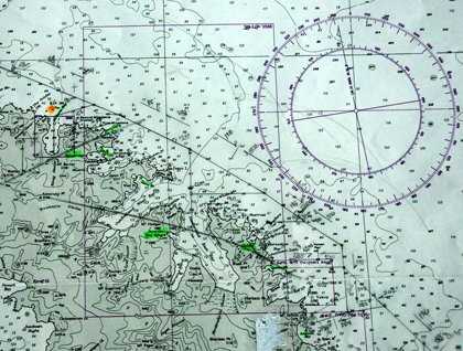 On National Geographic Explorer we use both paper (a section of South Georgia is shown) and electronic charts (a snapshot of our electronic plotter as we sail to the southeast). As powerful a tool as the electronic plotter is, information overload is a real phenomenon that can affect mariners in the throes of a challenging situation where instantaneous decision making can have negative consequences. The trust in the feel of paper and the connection of the eye looking out the bridge window and then down to the frayed coffee-stained chart is immediate, simple, and clear, being uncluttered by numerous rows of ever-changing numbers and colors.