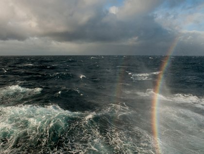It was a leisurely morning, and we had a chance to watch an old favorite movie, “Madagascar,” and there was lots of laughter heard in the lounge. The seas calmed a bit throughout the morning so many hardy souls were in the dining room for lunch. Afterwards lots of people were on the bridge trying to catch the elusive photos of waves crashing over the bow. There was even a rainbow seen at one point!