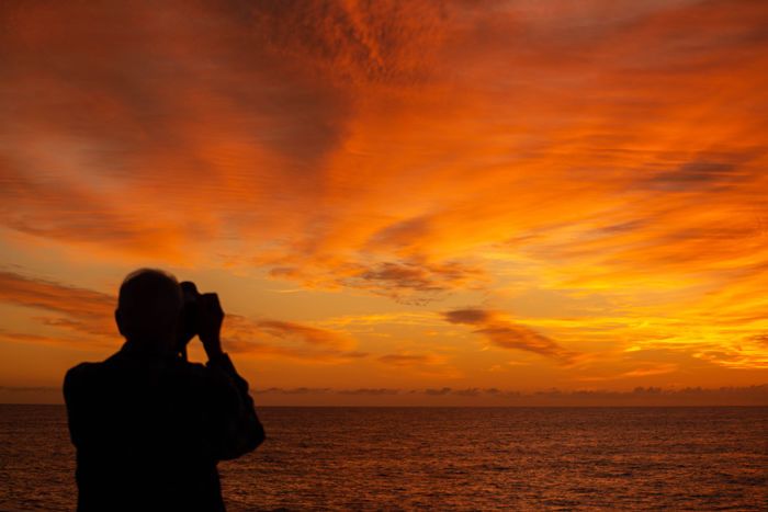 Though the sun may officially rise around 7a.m., some of the most stunning sights in Baja California occur during half an hour before its rays break over the horizon. This morning was no exception, as National Geographic Venture cruised north within the Sea of Cortez in search of any sort of large marine wildlife. Naturalists and guests alike stood watch on the bow and in the bridge, binoculars and spotting scopes glued to faces, hoping for a splash or a blow in the distance to indicate the presence of a cetacean.