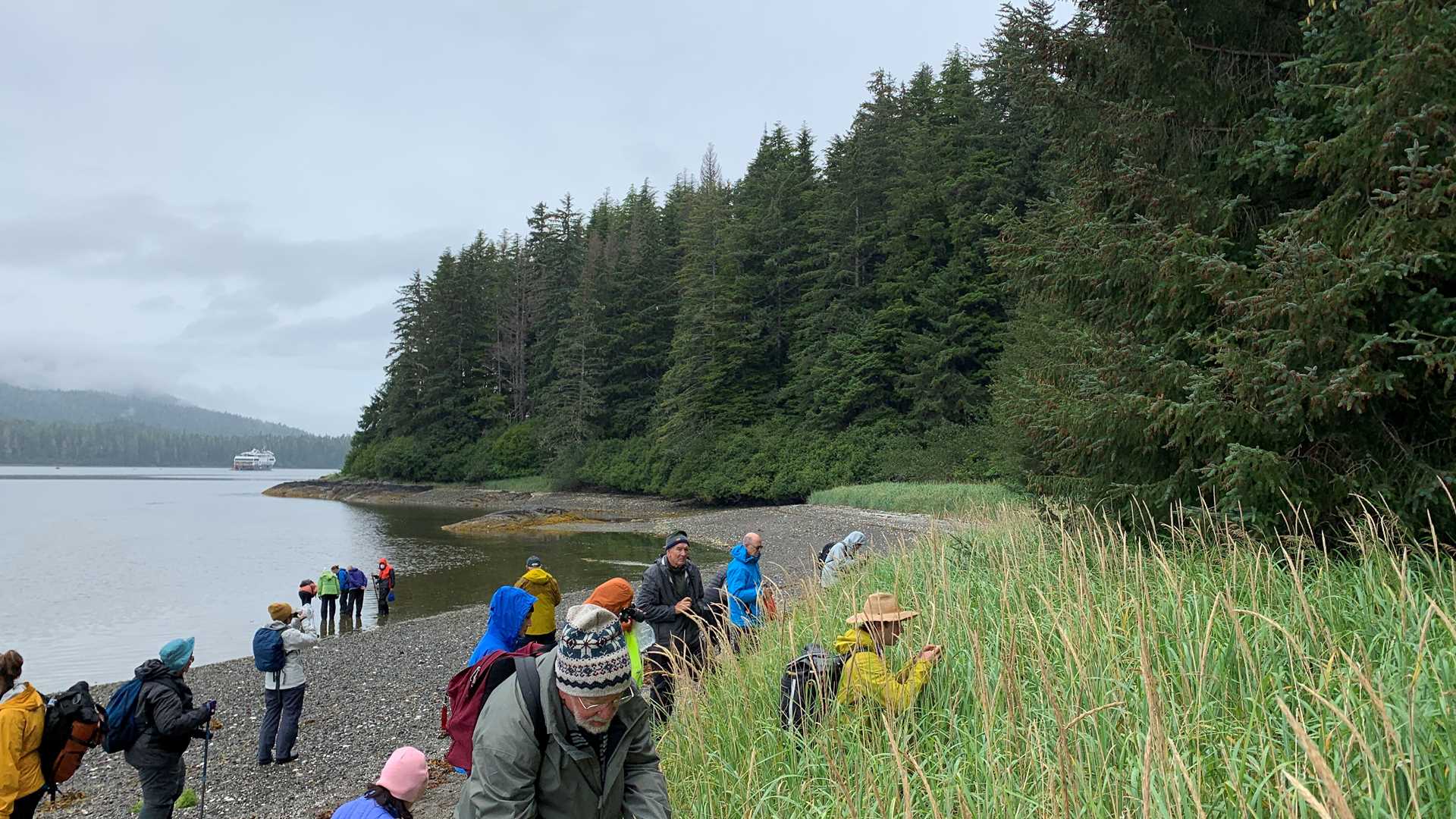 There is no better way to wake up on board than with a wildlife sighting announcement. This morning, humpback whales were spotted just off the bow. Guests and naturalists aboard National Geographic Venture enjoyed their morning coffee while watching whales breach. Morning operations included kayaking and standup paddleboarding with sea otters, exploring the forest with naturalists, intertidal walks with our undersea naturalist, and photography walks with our certified photography instructor. We continued our whale watching with more humpback whale sightings in Frederick Sound throughout the afternoon. Many guests enjoyed a cozy, rainy afternoon of playing games, reading, and enjoying conversation and presentations in between wildlife sightings.