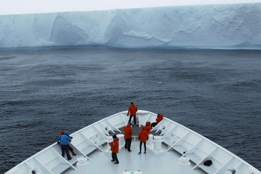 Today was an at-sea day aboard National Geographic Orion. Although we had no activities planned for off the ship, we kept busy with presentations, photo projects, and enjoying the relatively gentle seas. We also had an incredible opportunity to view a massive tabular iceberg from the bow of our ship. And, of course, we ate far too many desserts.