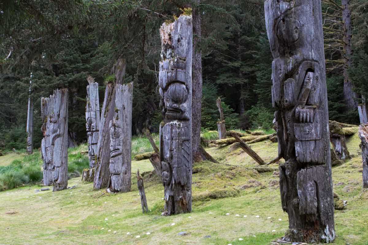 After a calm transit of 120 nautical miles along the eastern shore of Moresby Island from Queen Charlotte City, we dropped the hook on the exposed southwest coast of Gwaii Haanas and SGang Gwaay (Anthony Island). With the rough and tumble Pacific Ocean within reach, we immediately gained a great appreciation for the Haida people who chose to settle this area. As we explored the Sitka spruce-dominated forest, it was not long before we came upon house sites of old, where up to 300 Haida people lived up until the last big epidemic in the 1860s. Memorial and mortuary poles above the beach helped to paint the picture of a once thriving culture. The mortuary poles were the graves of a high status person, carved with the crests of the deceased, and at the top we could see the cavity where the remains were put inside in a bentwood box. We could not help but feel the sacredness of this site, and blessed we were with the great guidance of the watchmen, who taught us about the history and area, as well as our resident cultural interpreter, Barbara Wilson.