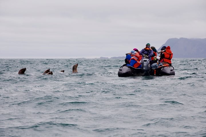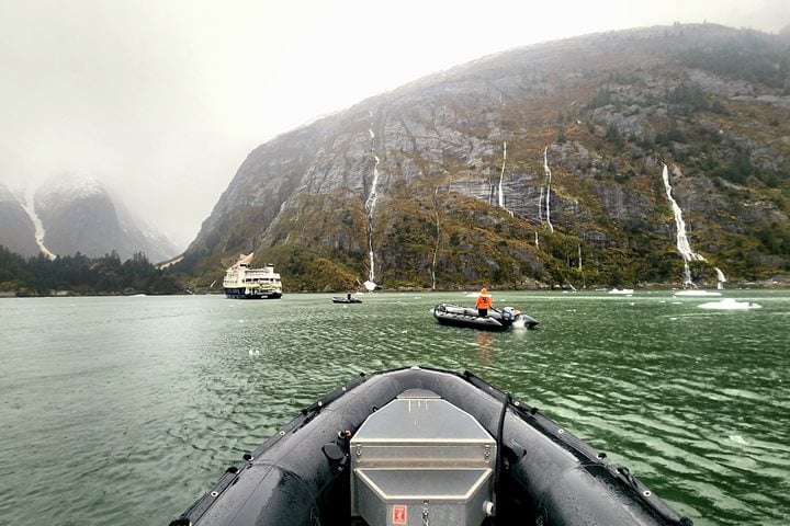 We were able to take a Zodiac cruise to view wildlife. Humpback whales blew spouts in the distance and bald eagles perched in the trees on the horizon.
