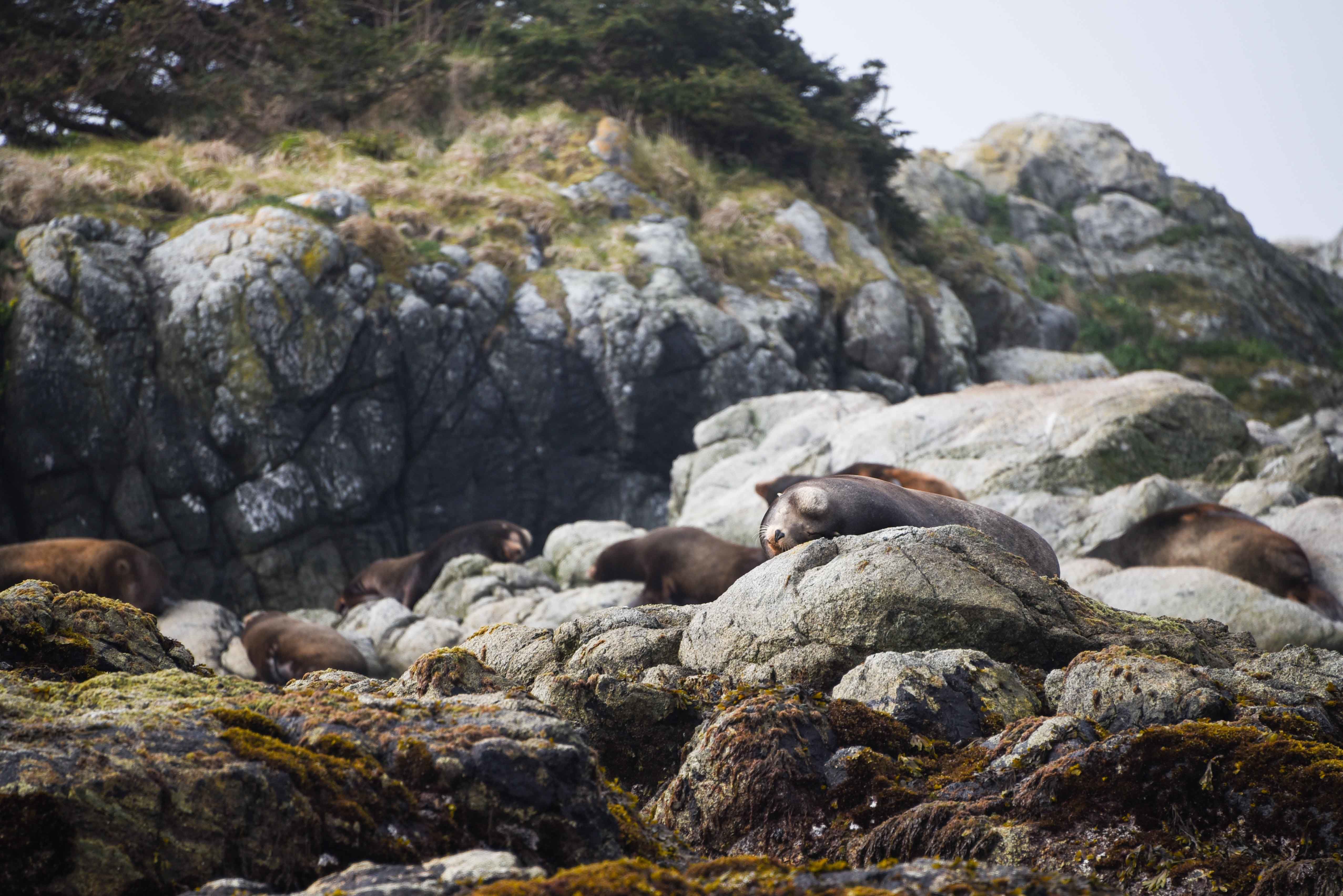 Sgang Gwaii is a special place those of us on this voyage were fortunate enough to witness at length. It is the site of a former Haida village, though only a few ceremonial and house poles remain today. The watchmen tasked to look after the village teach visitors the history and culture of the people that once lived there. We also got the opportunity for a Zodiac tour around the island, leading us through the fog to a sea lion haul-out and to few shy but inquisitive seals as well as many different sea birds.