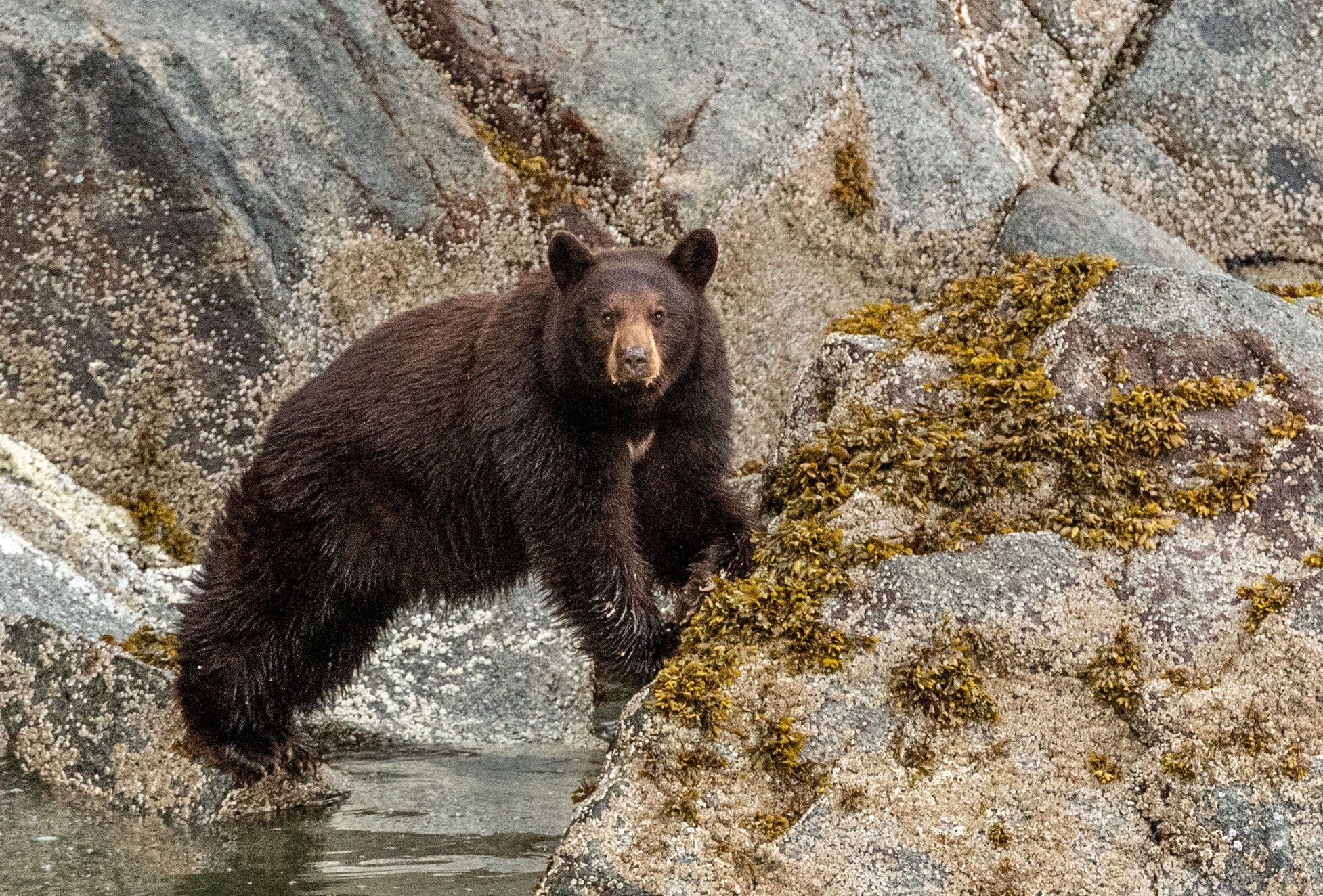 Today, we explored the island of Sgang Gwaay in Gwaii Haanas National Park Reserve, National Marine Conservation Area Reserve, and Haida Heritage Site. We took a Zodiac ride to the northern part of the island. We walked down a boardwalk path to the site of Sgang Gwaay Llnagaay, an ancient village and sheltered bay. The area became a UNESCO National Heritage Site in 1981. It is one of the best examples of a traditional Northwest Coast First Nations village. Despite the rainy weather, we had an excellent time exploring the site with our local Watchman guide, Paul.