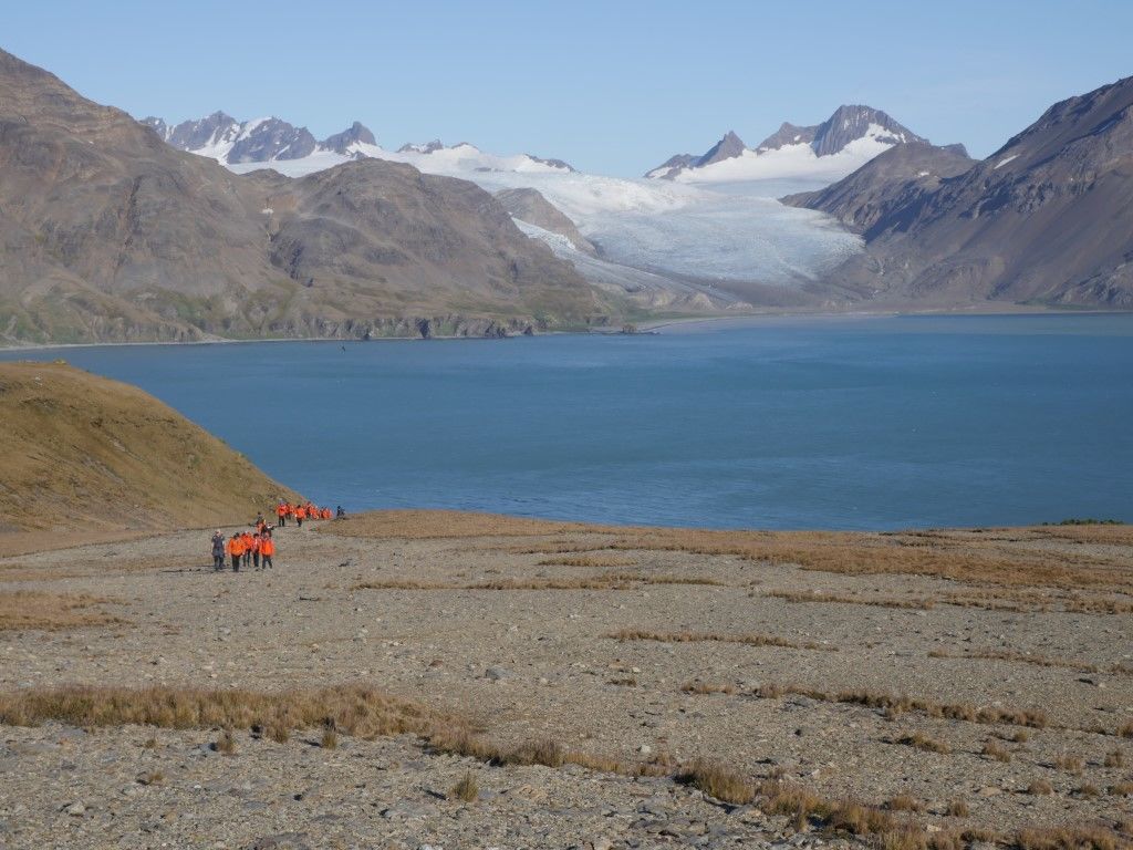 The day started at 6:45 a.m. with a hike in the footsteps of Shackleton. We retraced the final leg of Shackleton, Worsley and Crean’s famous hike across South Georgia, which was when they finally reached safety after their ordeal on the ice. Shackleton wrote afterwards: "I have no doubt that Providence guided us...I know that during that long and racking march of thirty-six hours over the unnamed mountains and glaciers it seemed to me often that we were four, not three.”
