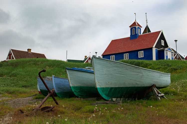 Nestled just north of Kangerlussuaq, where we took our first steps on Greenland, sits the charming and prosperous hamlet of Sisimiut. The economy there, built on fishing and tourism, was bustling along in the “heat” of summer with construction going like mad and everyone outside working and enjoying the high season. We wandered among homes and businesses in town and took scenic walks to the museums, enjoying classic Greenland scenes complete with sled dogs and a harbor packed with boats. After our afternoon excursions, we were treated to a cultural display of Greenlandic kayak skills just off the stern of the ship.