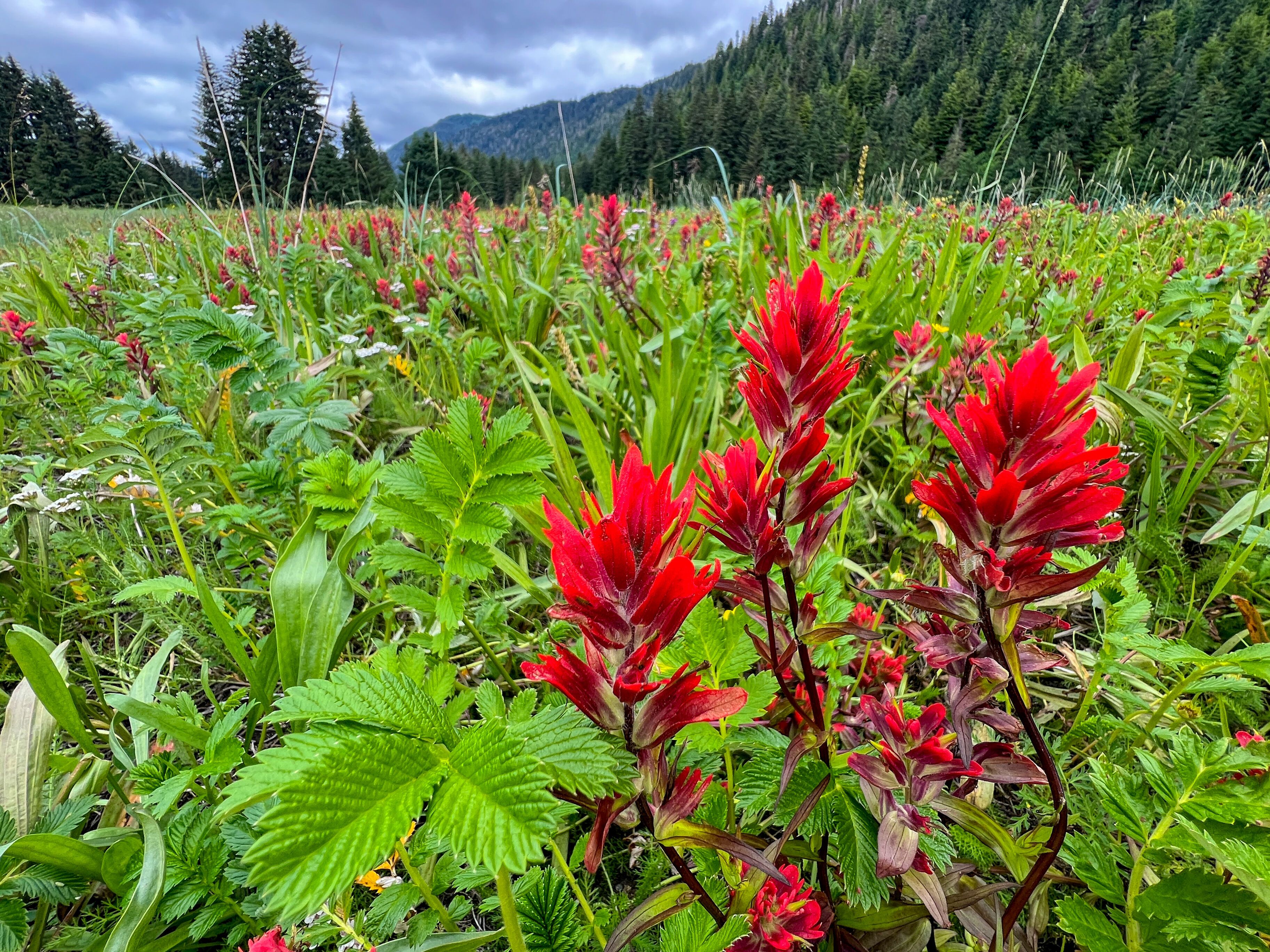 We then set out to explore this stunning bay by kayaking, paddleboarding, and hiking. I led one of the long exploratory hikes; we covered about 5 miles and saw a diversity of habitats. Some highlights included huge patches of bright red paintbrush flowers, eating berries, and many massive piles of bear poop.