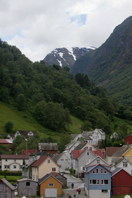 All morning, we sailed farther into Sognefjord and the scenery got more and more dramatic. Snow appeared on some of the higher peaks, and the waterfalls got larger and more numerous. Beautiful blue sky was a surprise, and stayed with us for most of the day. Just after lunch we arrived at our destination, the tiny village of Undredal.