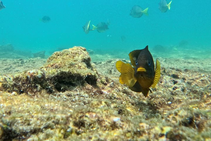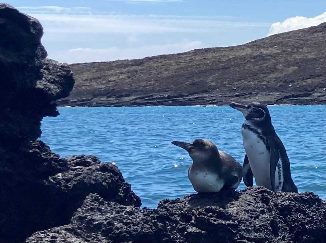 As soon as we awoke, we observed the mesmerizing landscape of Sombrero Chino. This is a very small islet with a central non-active volcano, perfect for early morning pictures and the beginning of our adventures. Kayakers, with the company of playful Galapagos sea lions, enjoyed a smooth and relaxed time in a channel formed between Sombrero Chino and Santiago Island. Afterwards, the blue waters of this canal gave us a chance for wonderful snorkeling, with the company of colorful fish, white-tipped reef sharks, and the unique Galapagos penguins.