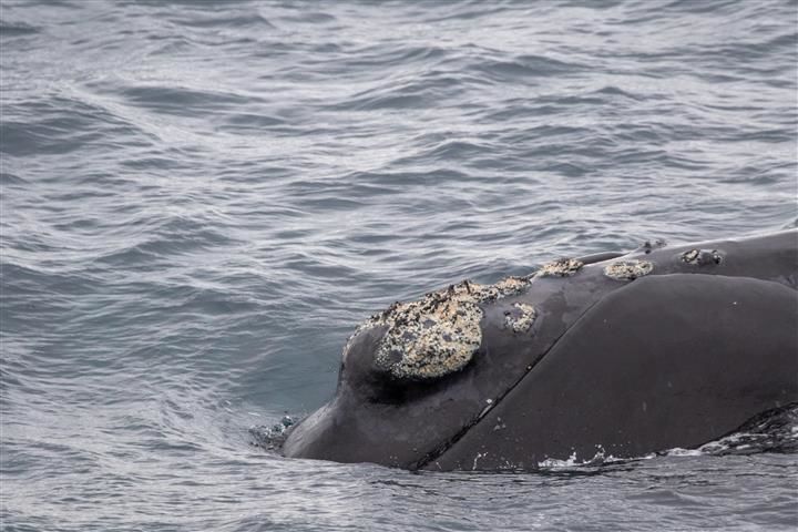 Suddenly, we were not alone—whale blows on the horizon. Binoculars trained on their position, we moved slowly toward them. First, fin whales—a good number too, as we passed over a shelf edge deep below us. Then, humpbacks. Visible flukes and soft, puffy blows. Then a species so rare we hardly dared to believe our eyes—blue whales! Blue, mottled skin and short dorsals—an incredible encounter. But the excitement wasn’t over quite yet. Just ahead, steaming toward us—southern right whales! A cow and a calf. An incredible encounter with such a rare and wonderful species.