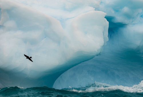 During the middle of the day, we hopped into our Zodiacs and rode the waves between Coronation and Monroe Islands in the South Orkneys. There were a stunning number of chinstrap penguins carpeting the lower slopes of the mountainous islands. There were fuzzy gray chicks, molting adults, and parents waddling up and down the hillsides to feed their hungry offspring. With this quantity of penguins, it was no surprise to find quite a large number of leopard seals patrolling the waters just below the colony. Many came near the Zodiacs to investigate the human guests, and we all got excellent views of their large heads and sinister, toothy smiles. A couple of Zodiacs even witnessed the seals hunting penguins, skinning them by beating them on the surface of the water, and devouring the juicy innards. Many giant petrels and storm petrels followed in the wake the seal's destruction to feed on the scraps. We also saw a handful of fur seals and crabeater seals.