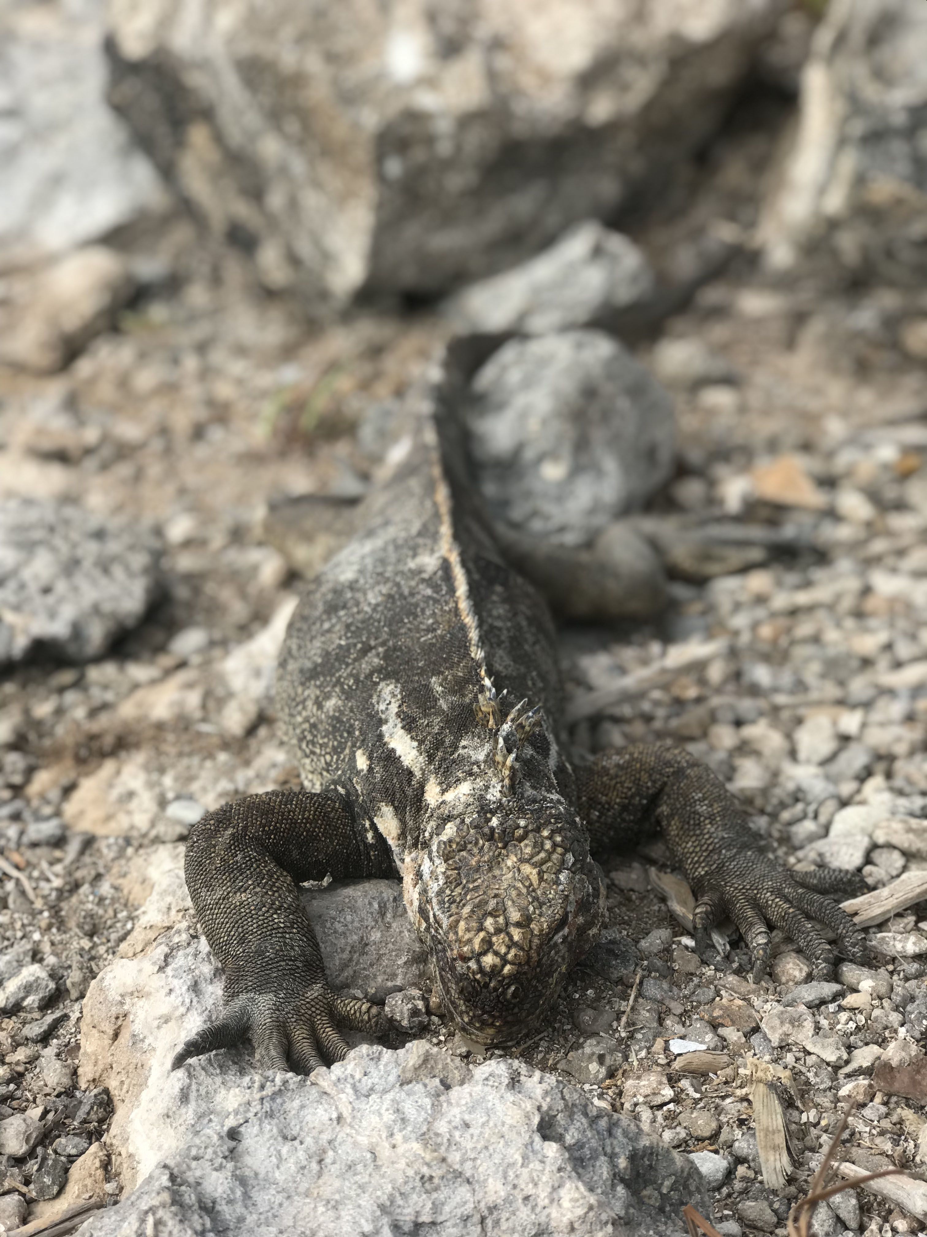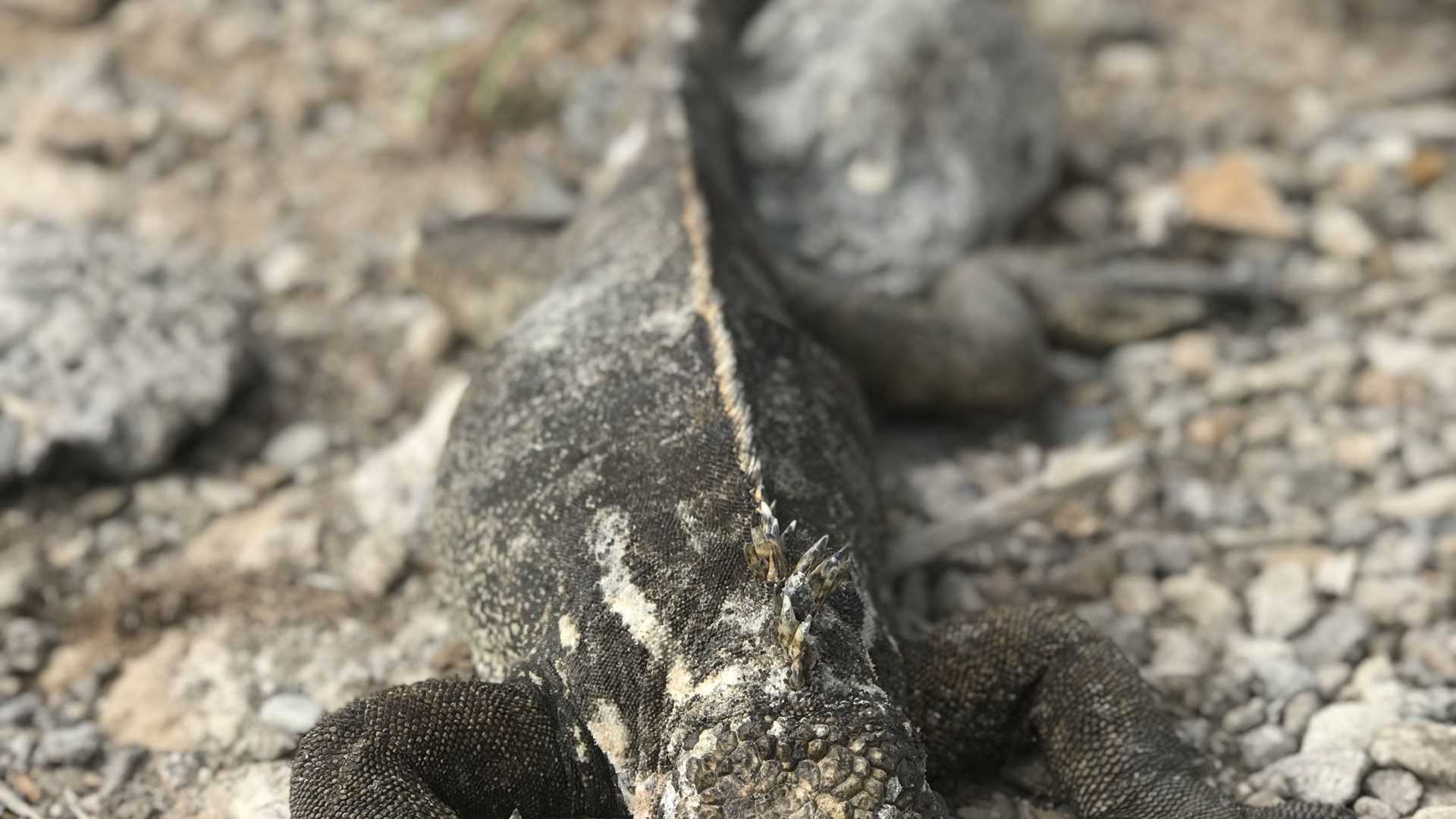 Santa Fe is home to another, entirely distinct land iguana here in Galapagos, Conolphus pallidus. Pale in color, large in size, it is endemic to the island in the middle of the Galapagos archipelago – as is the giant prickly pear cactus, the Santa Fe rice rat, back in time a giant tortoise all to its own, a lava lizard, and perhaps even more creatures!