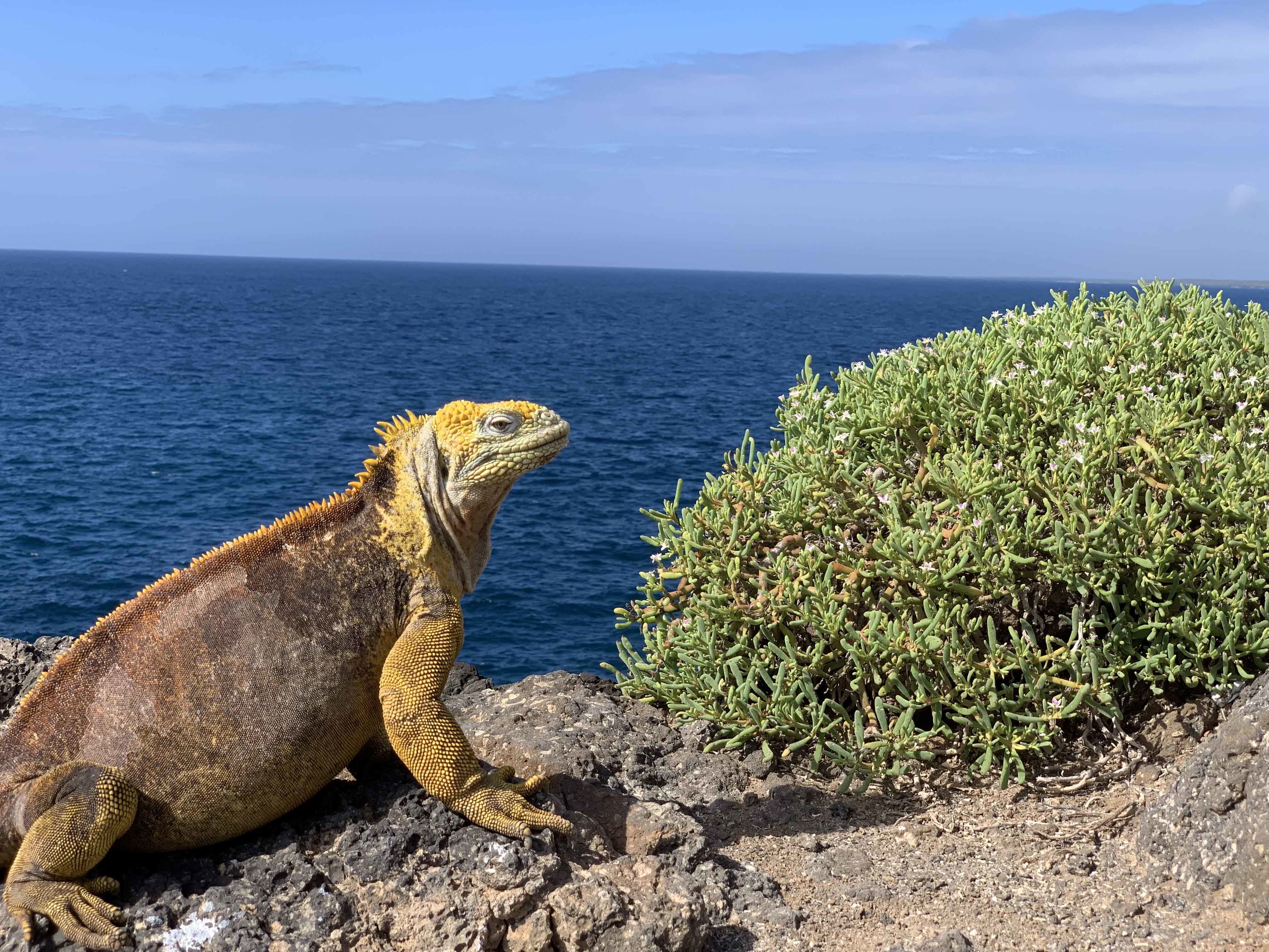 Located east from Santa Cruz Island, South Plaza Island offers an incredible landscape and plenty of wildlife. During our morning walk, we observed Galapagos land iguanas all along the trail, several of which were feeding on yellow flowers. Along the cliffs, there were swallow-tailed gulls. Blue-footed and Nazca boobies were in flight and showing their feet to those of us admiring from below. Magnificent frigatebirds were gliding and several pelicans and red-billed tropic birds made their appearance! The afternoon was spent at Santa Fe Island, where inside the calm bay our guests got out on kayaks and paddleboards for a water-level vantage of the area. A long and a short walk commenced after, affording our guests intimate closeups of the unique Santa Fe land iguanas! What a gorgeous day in paradise!